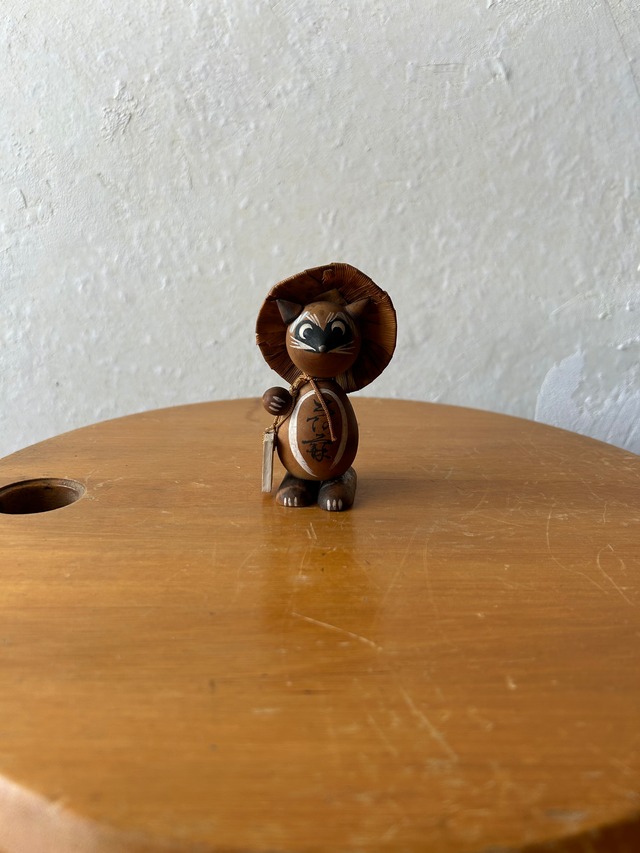 木製のたぬきです。こけしを模した様な置き物で、太宰府の文字が入っており、太宰府でお土産として販売されていたモノでしょうか。 首がコロコロと動く姿がなんとも、愛らしいです。 サイズ(mm) W90xD75xH165 No.226