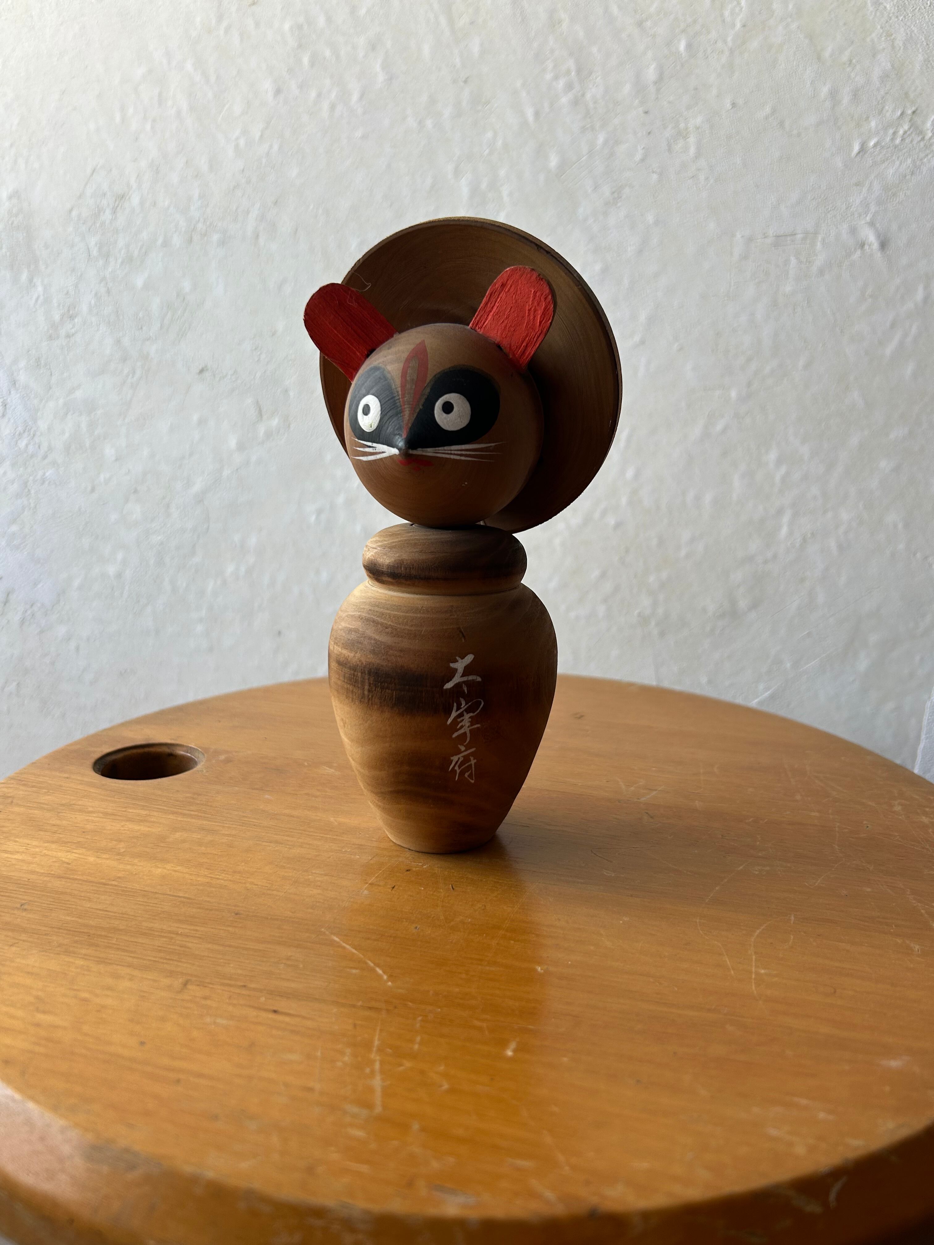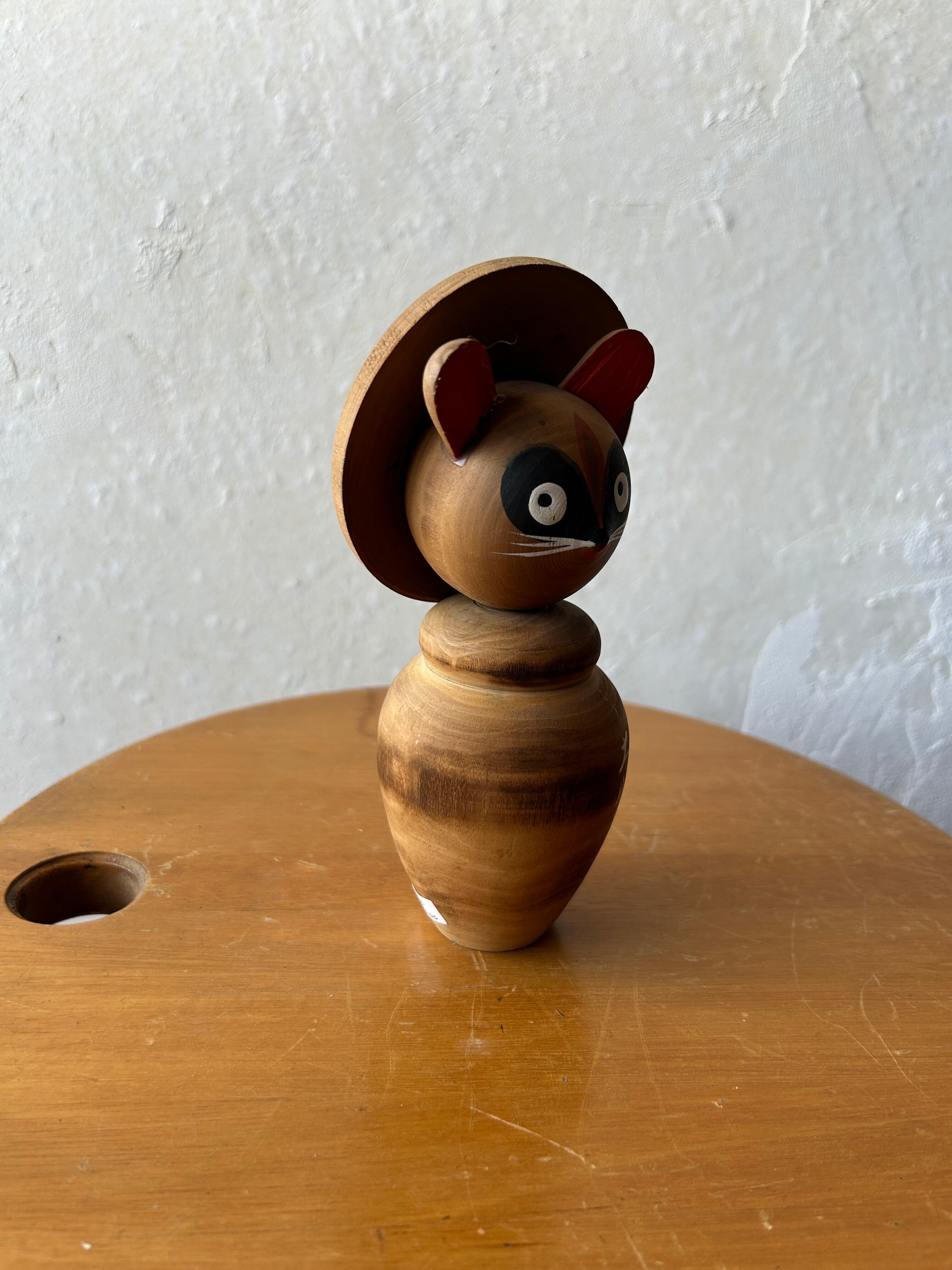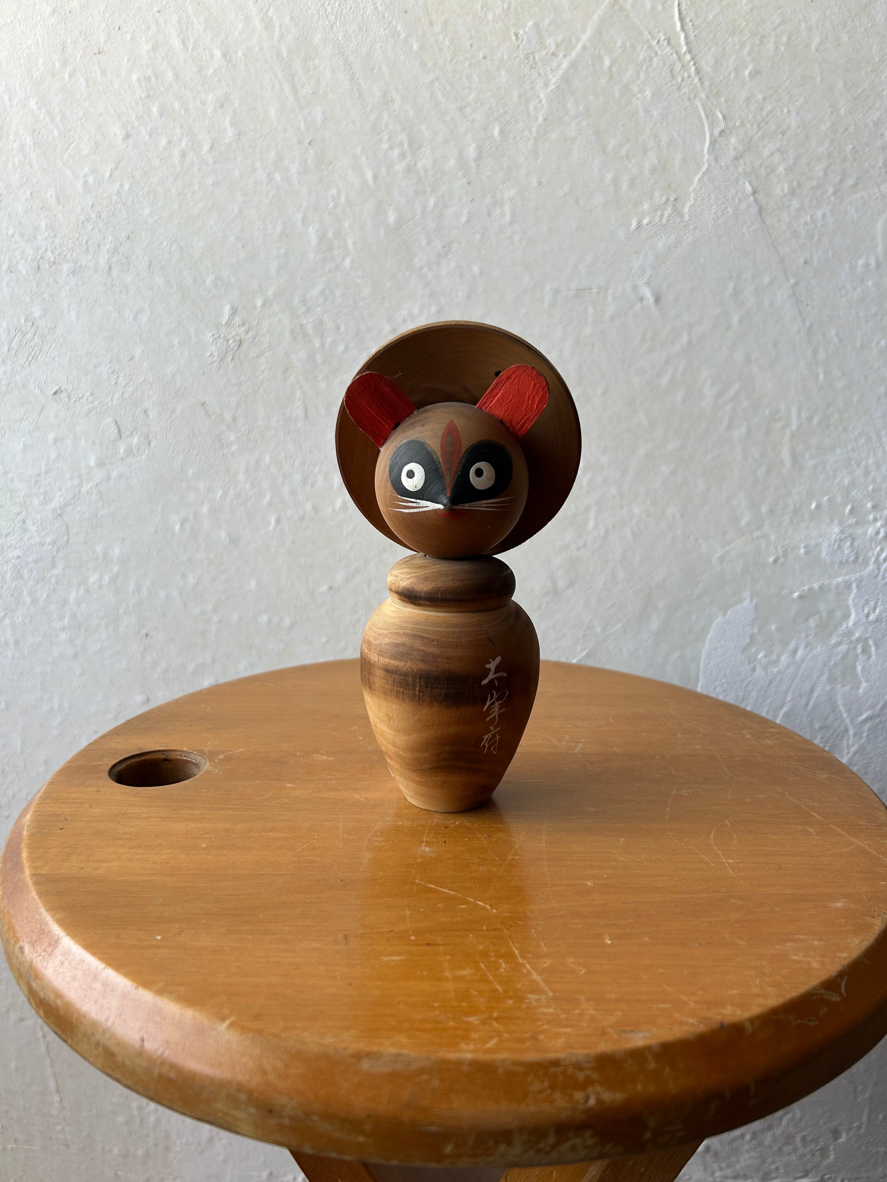 木製のたぬきです。こけしを模した様な置き物で、太宰府の文字が入っており、太宰府でお土産として販売されていたモノでしょうか。
