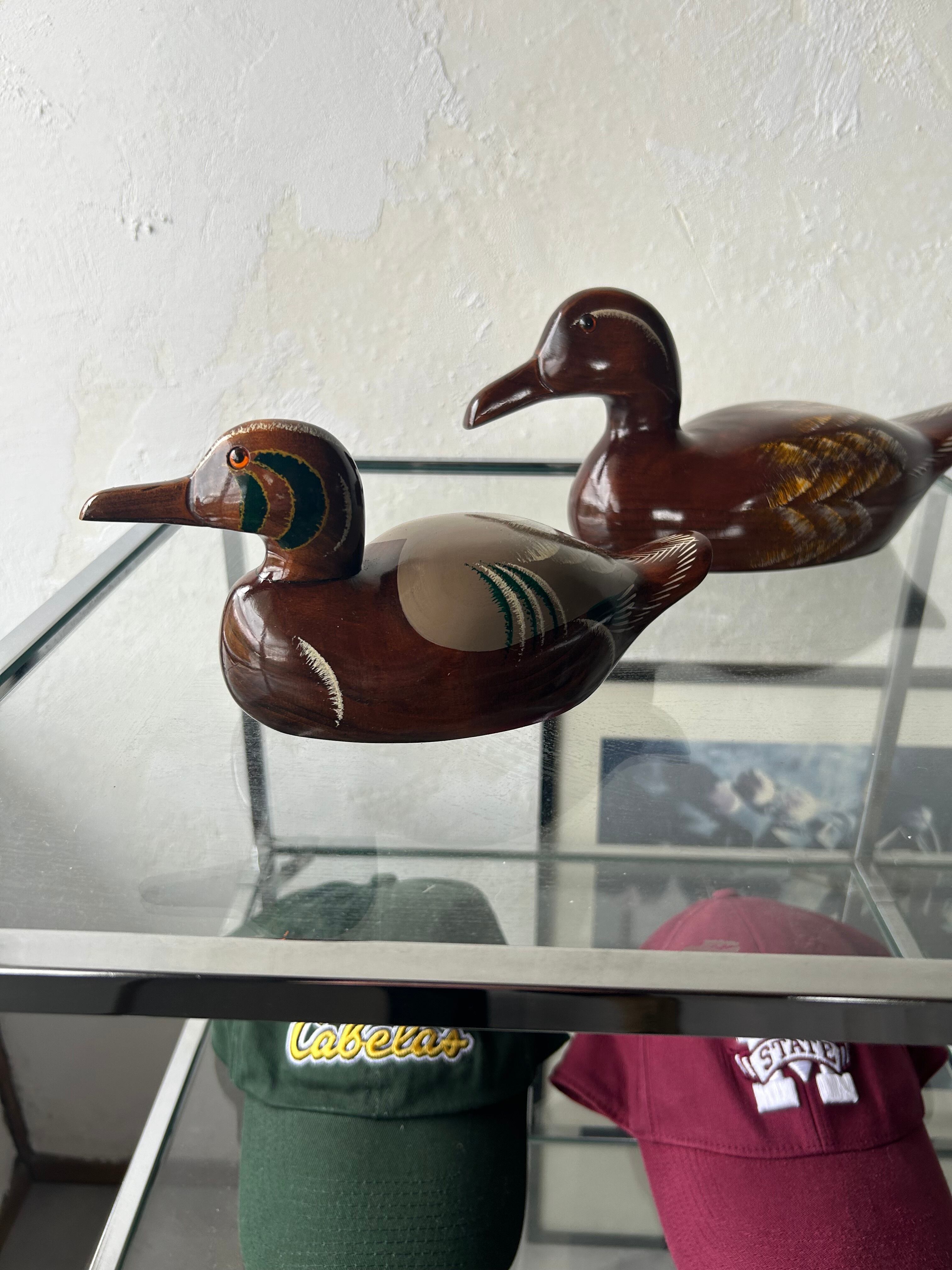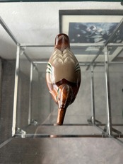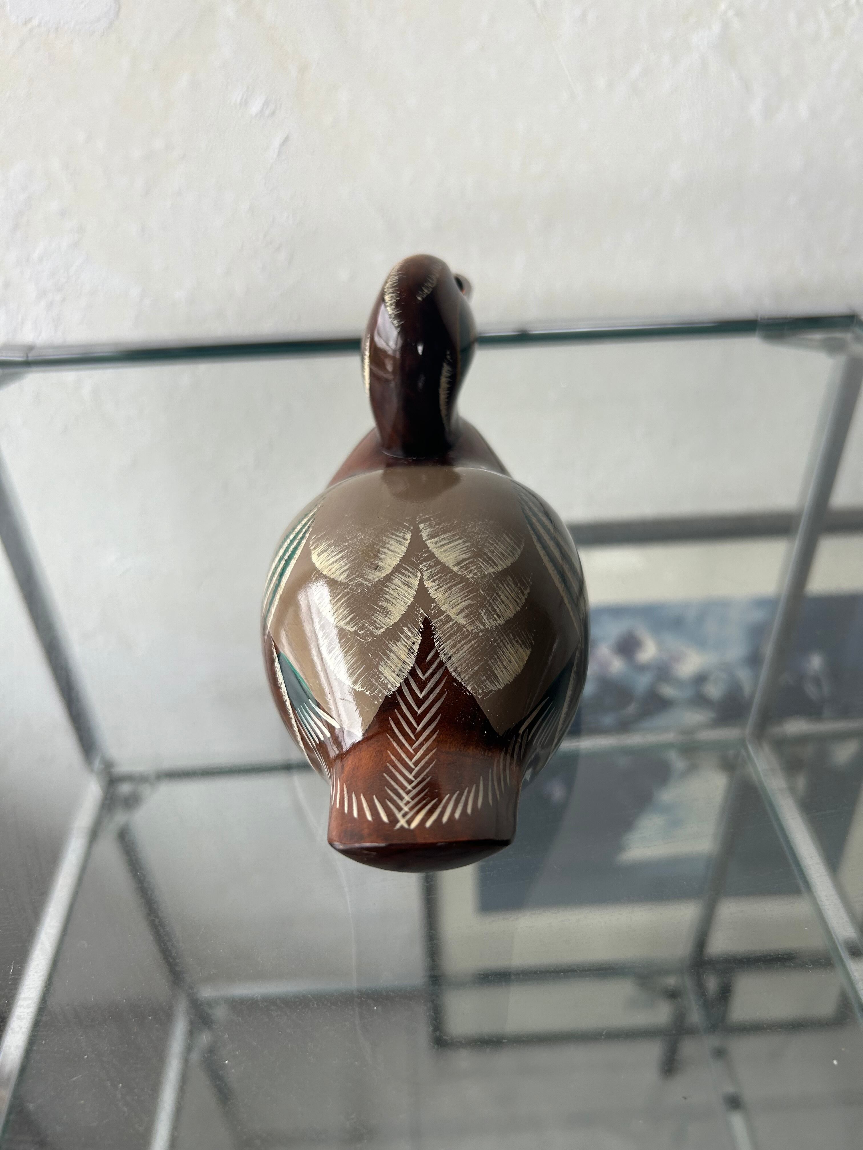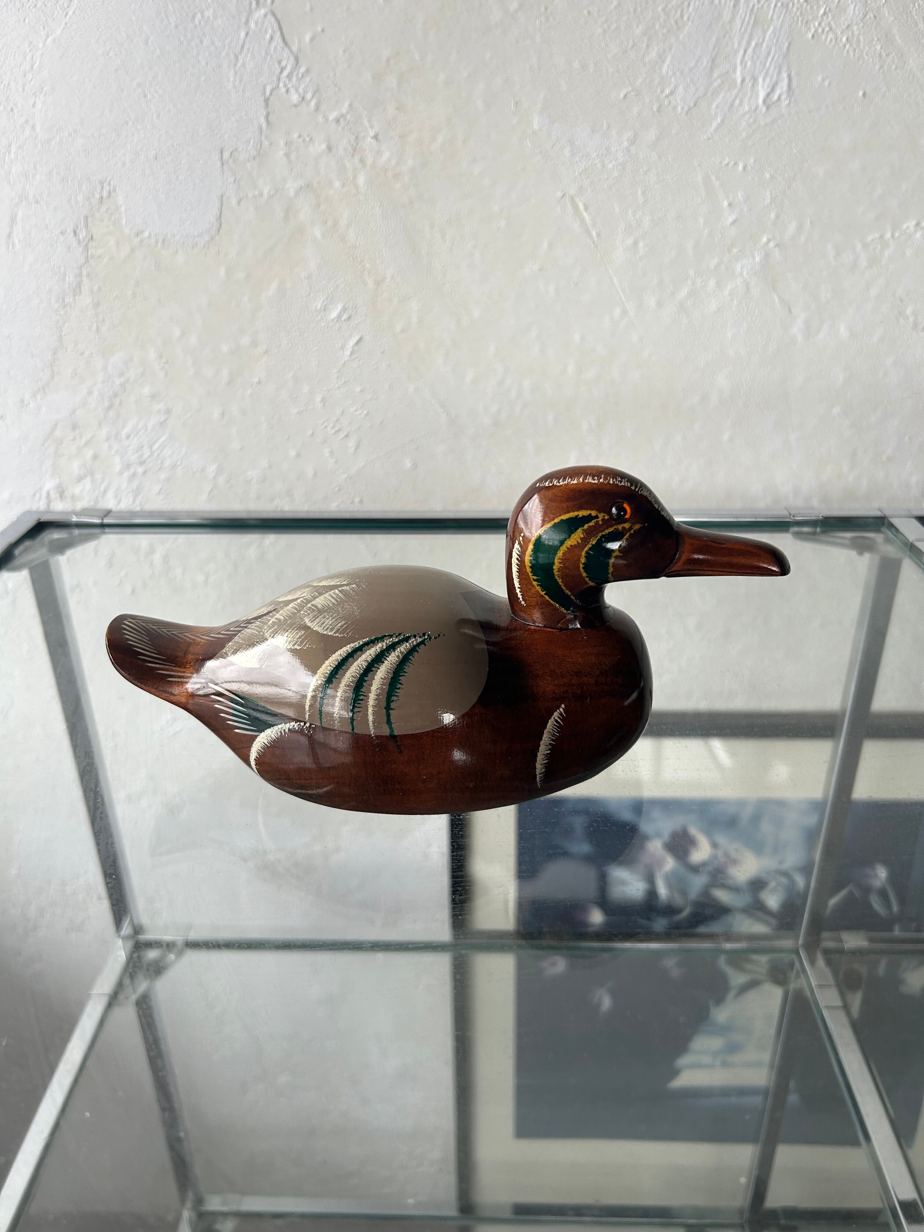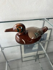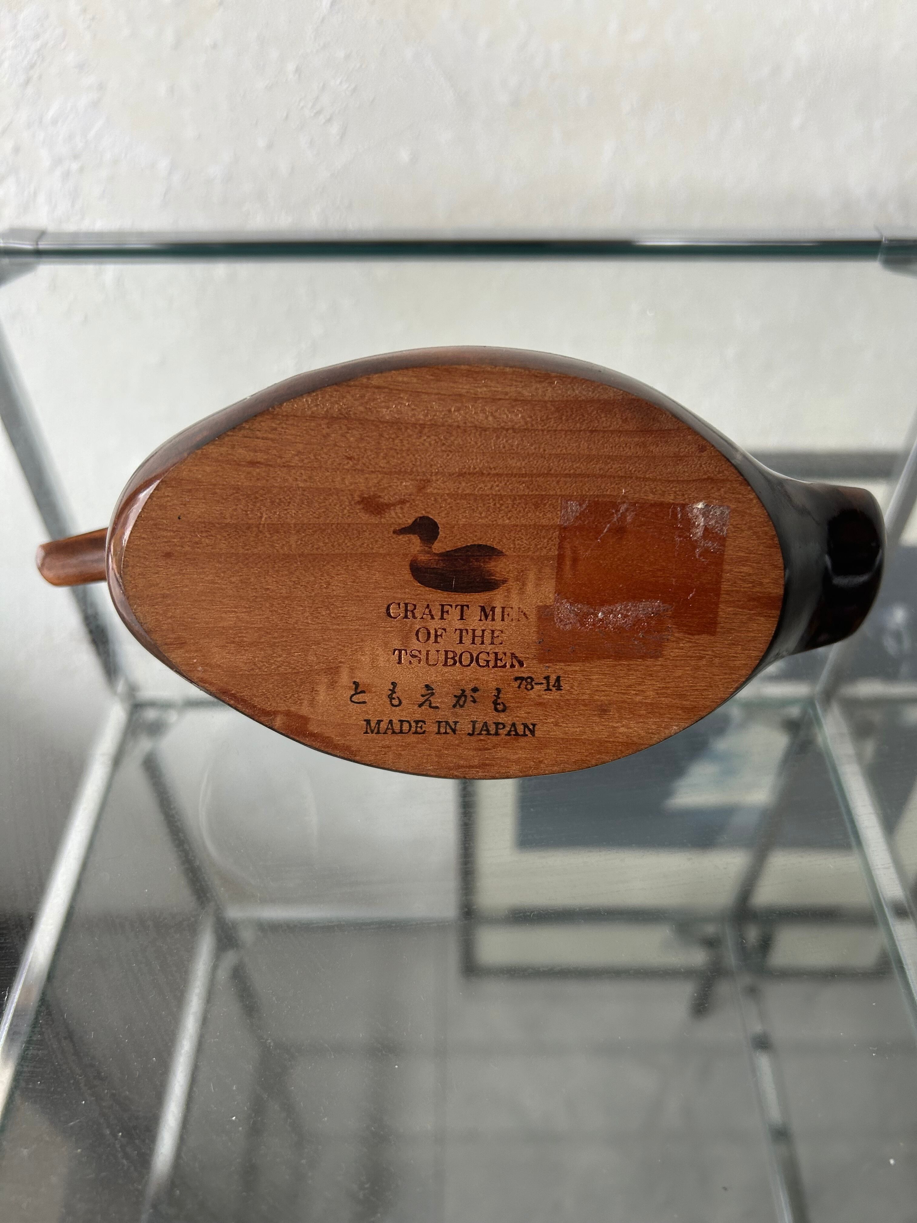 木彫りでできた鴨、デコイです。底の記載から、新潟の木製製品を作られている工房の作品かと思われます。