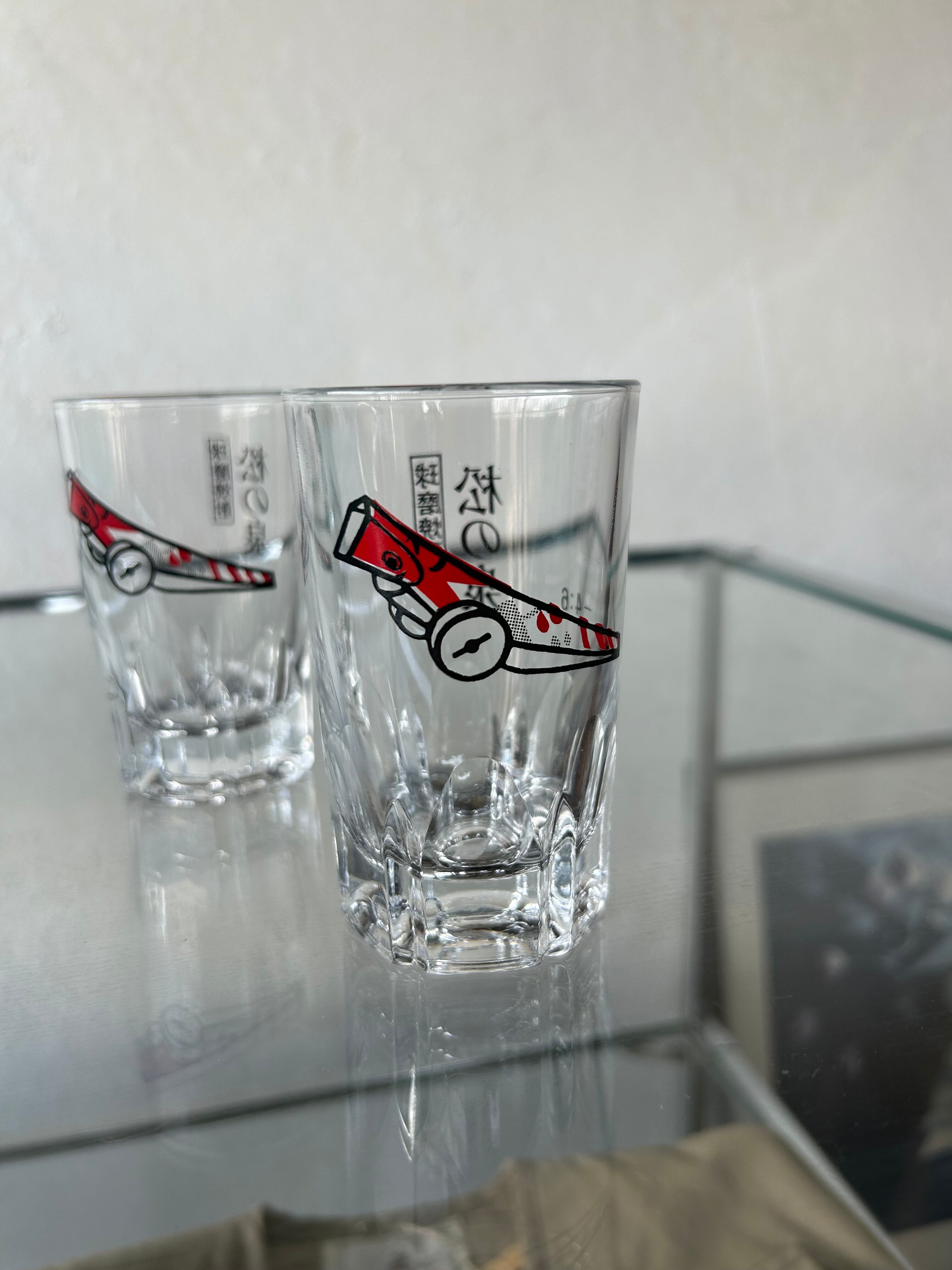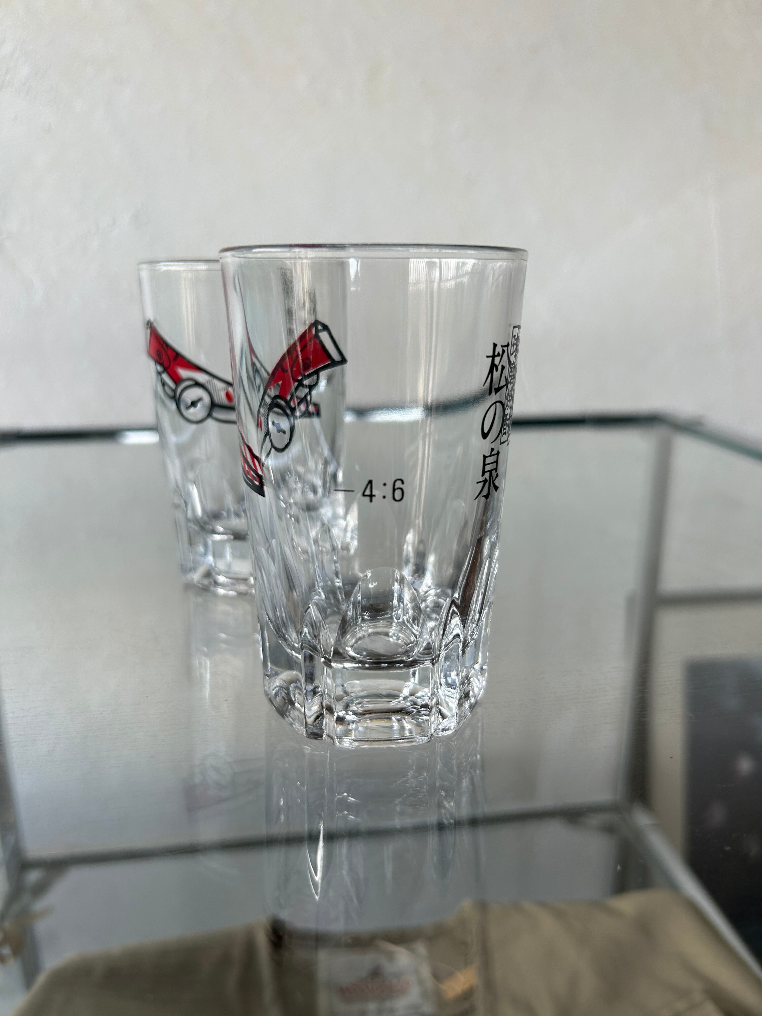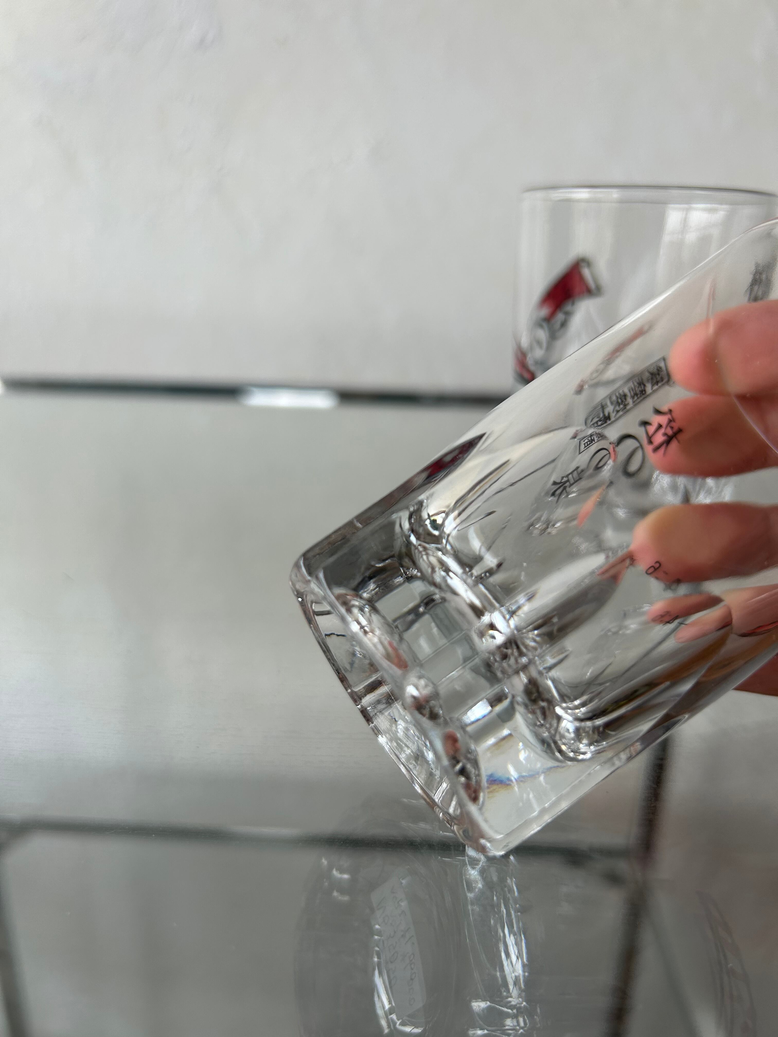 熊本県の南、人吉球磨地方の蔵元である松の泉酒造の焼酎グラスです。松の酒造とは、創業から120年以上にわたり、地元の人々に愛される晩酌焼酎を造られている蔵元さんです。グラスには、人吉球磨の伝統工芸品のきじうまの素朴なイラスト。「焼酎のロクヨン」と言われる、焼酎とお湯の割合が6:4になるようにお湯割りにする飲み方ができる目盛りつき。