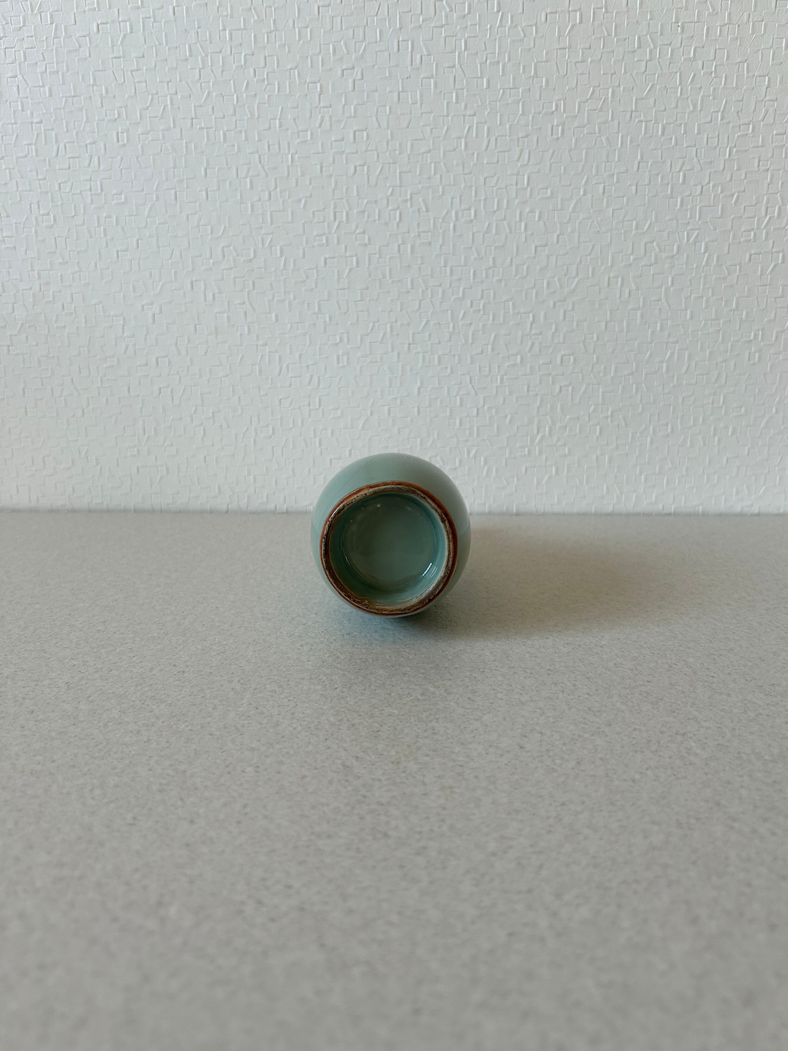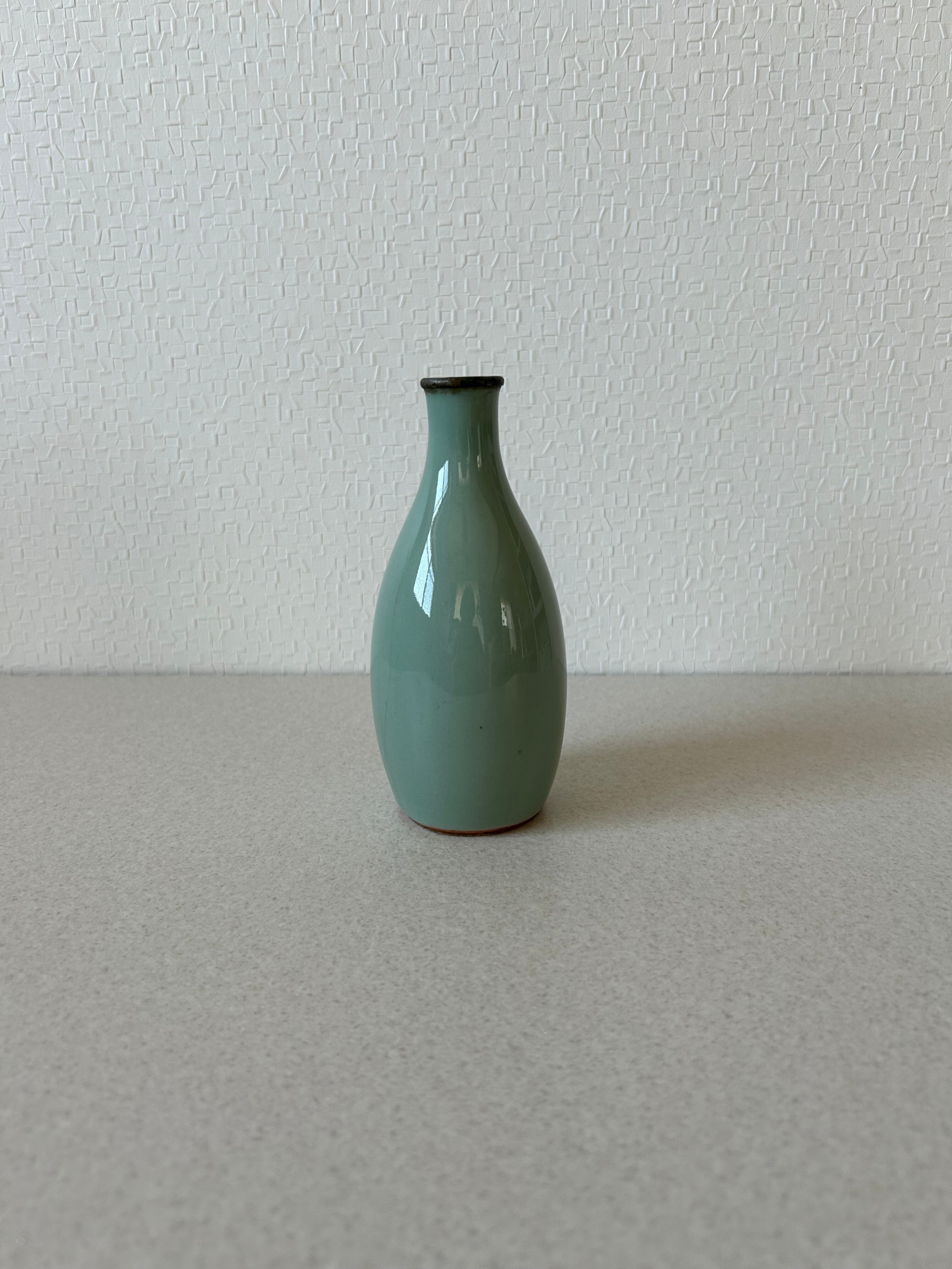 徳利として利用されていたものかと思われますが、一輪挿しとしてぴったりのサイズ感です。青と緑の中間のような色です。野花などを摘んで飾るのに丁度良い大きさです。