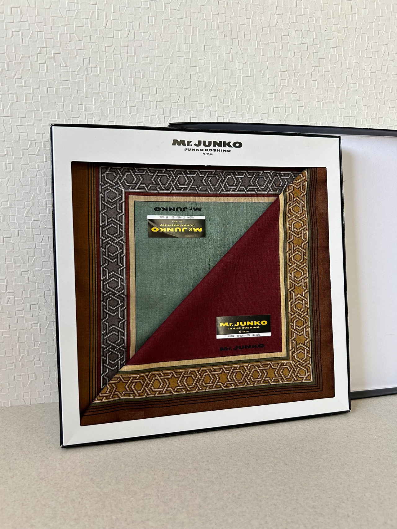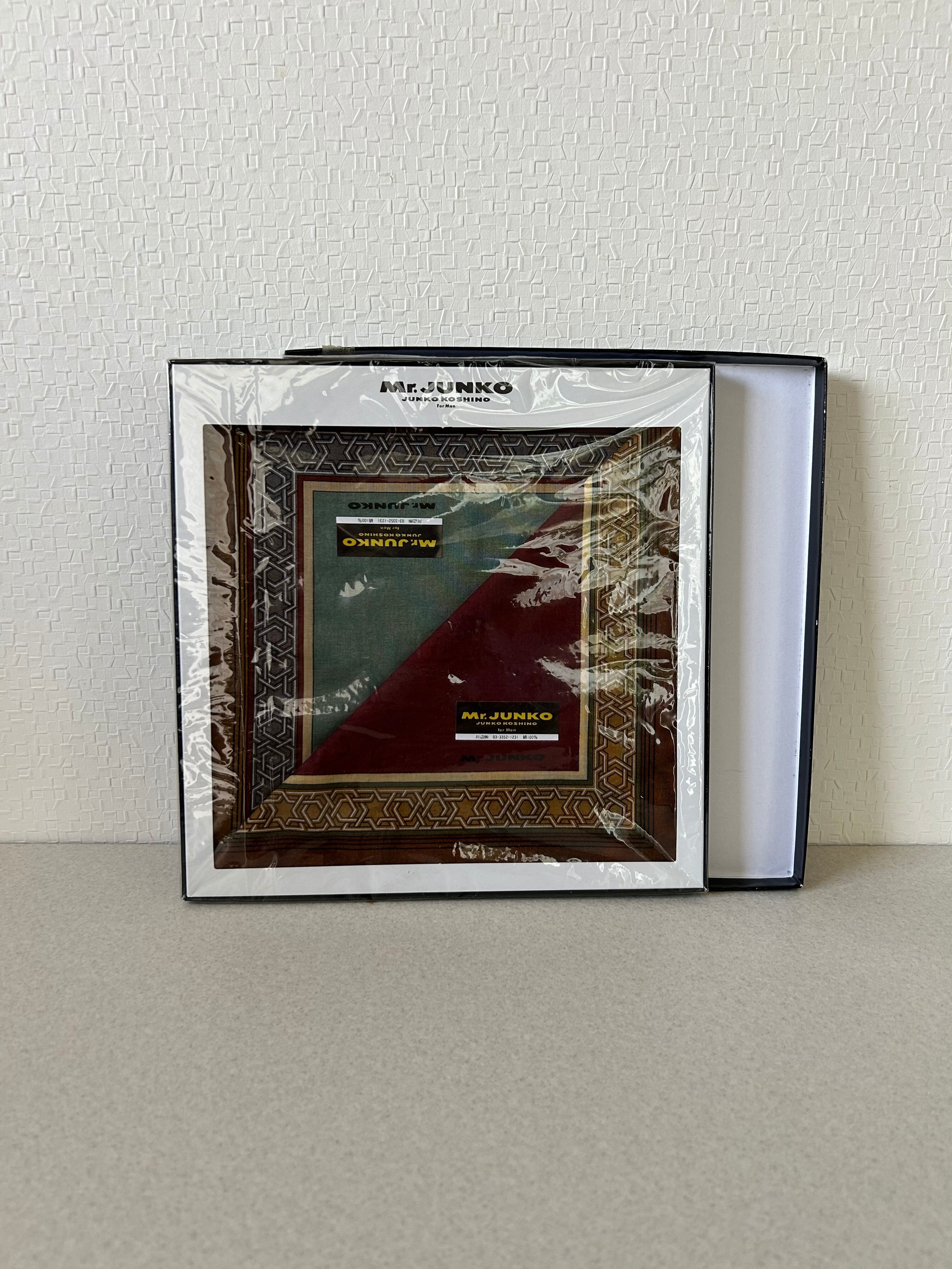 JUNKO KOSHINOのメンズラインでデザインされたと思われる、大判のスカーフ、色違い2枚セットになります。落ち着いたら色味で上品なデザイン。スーツや襟元のスカーフ、バッグに巻くなど。古着とも相性が良さそうです。