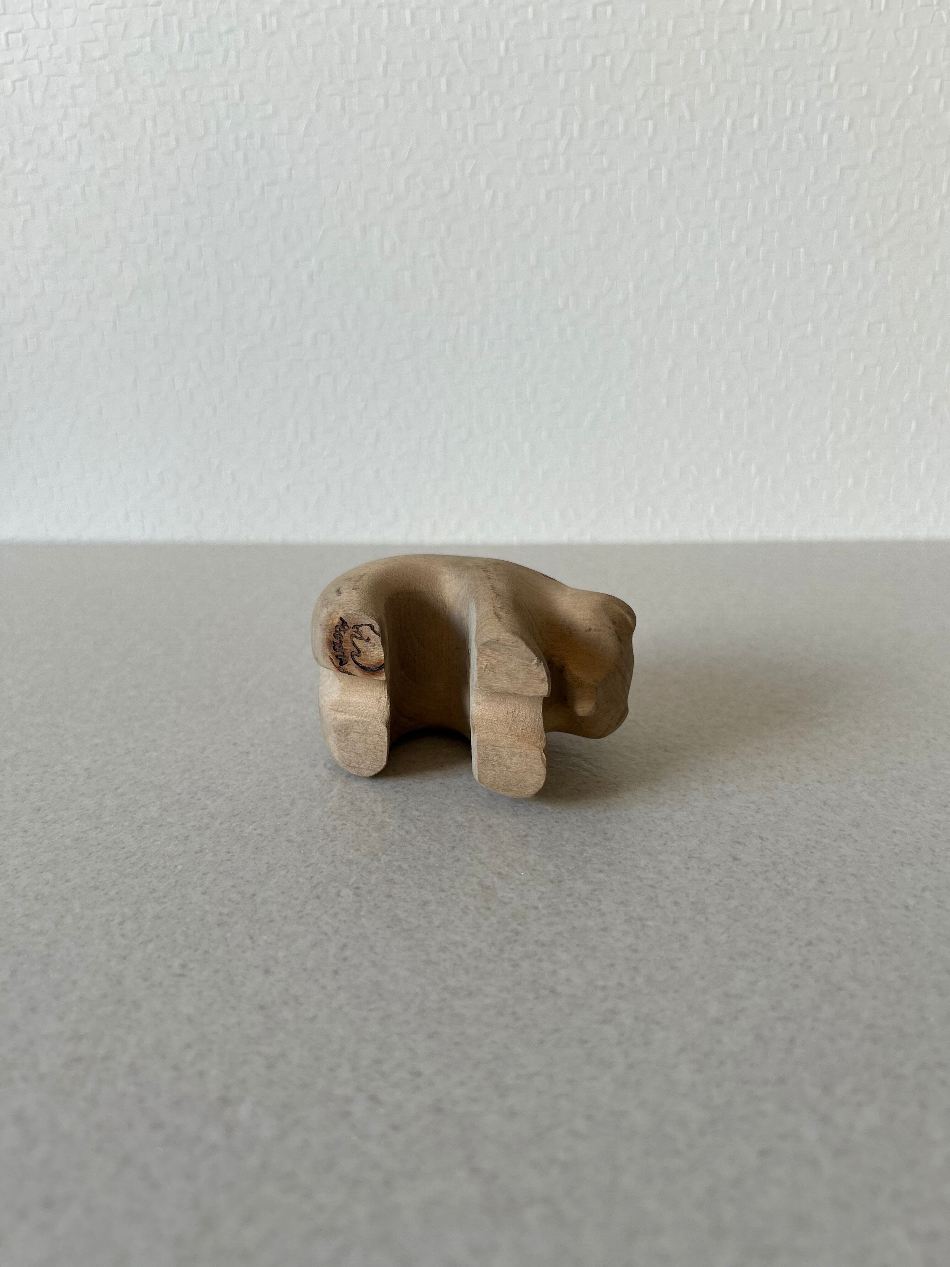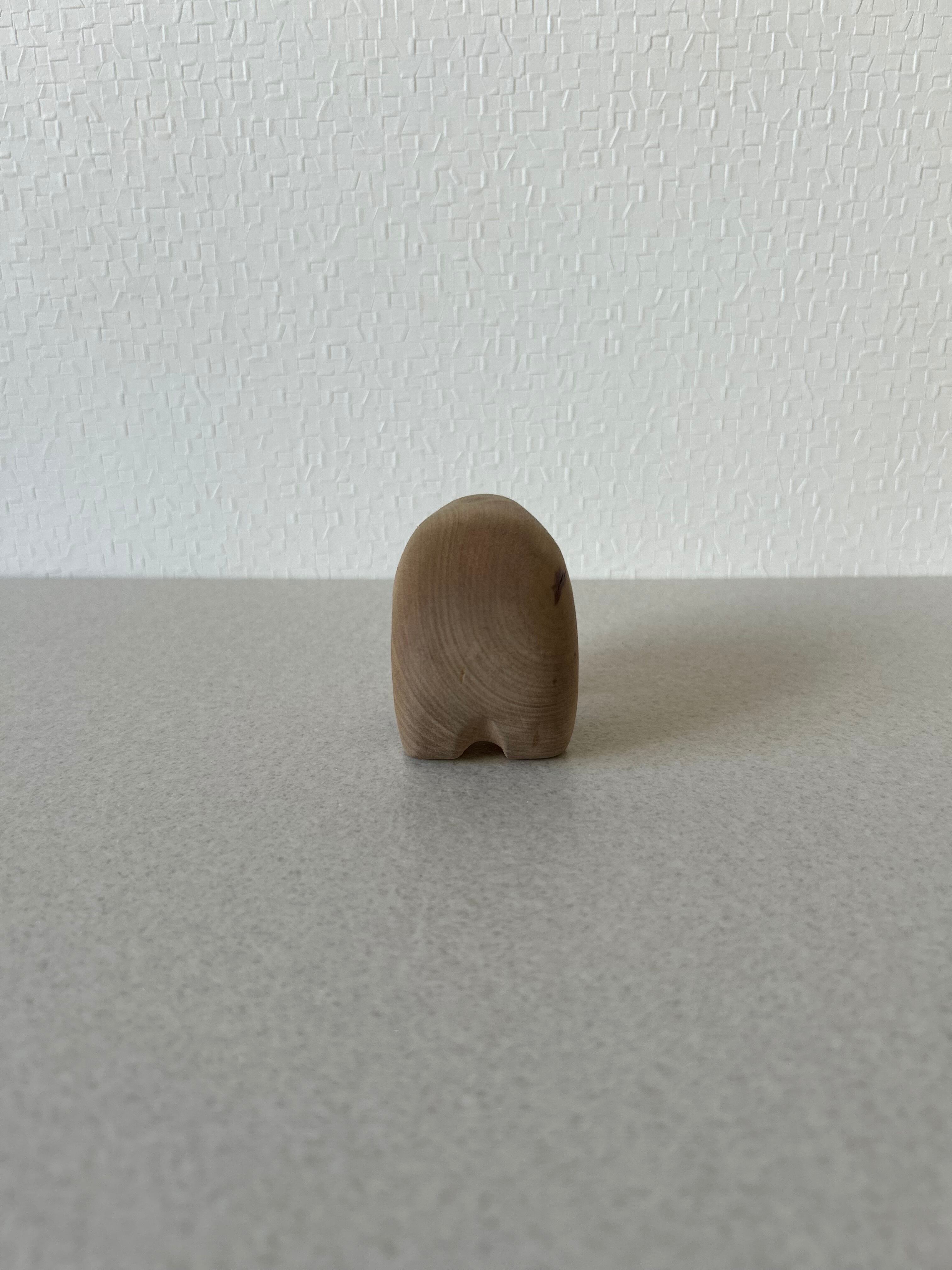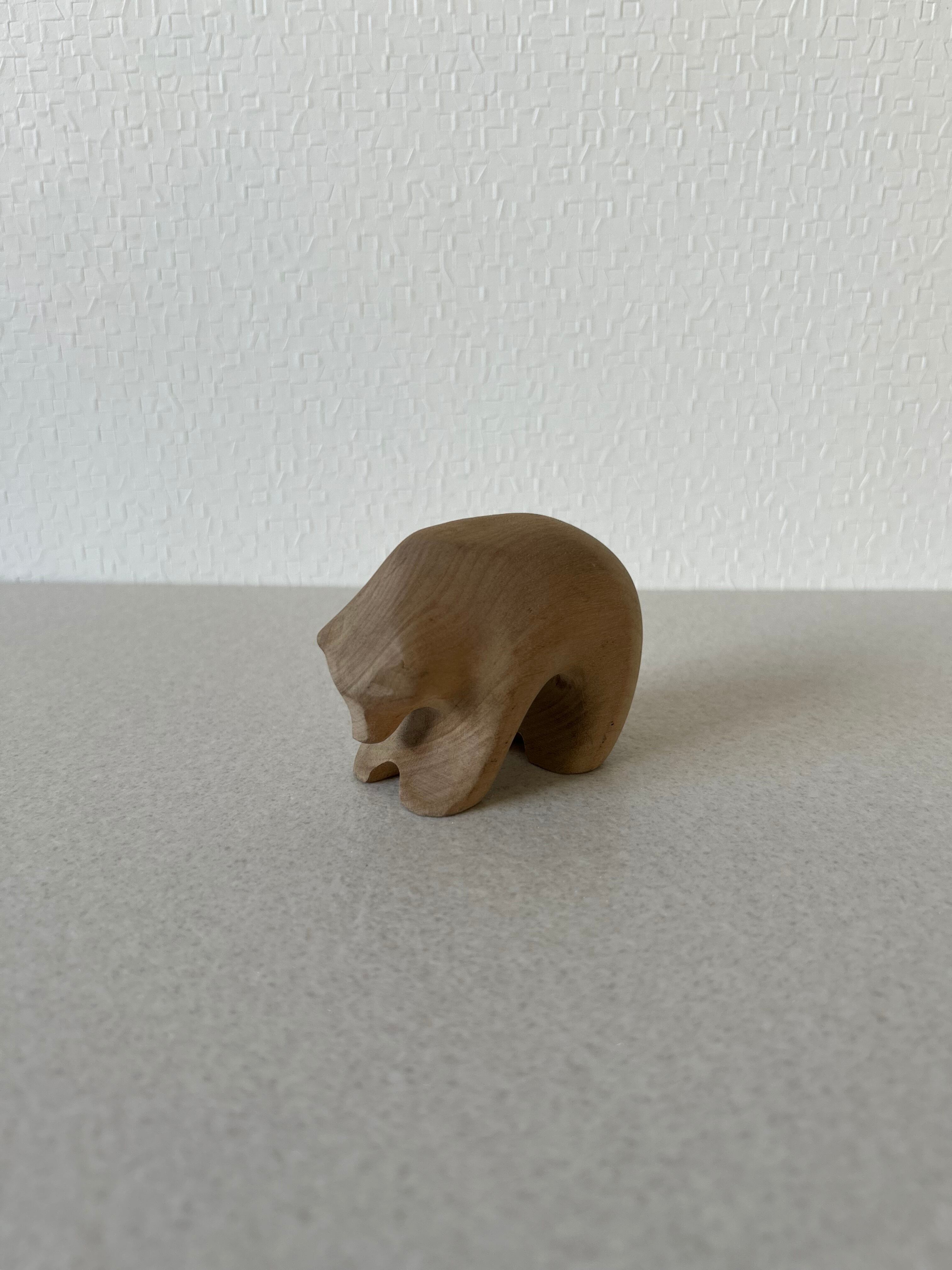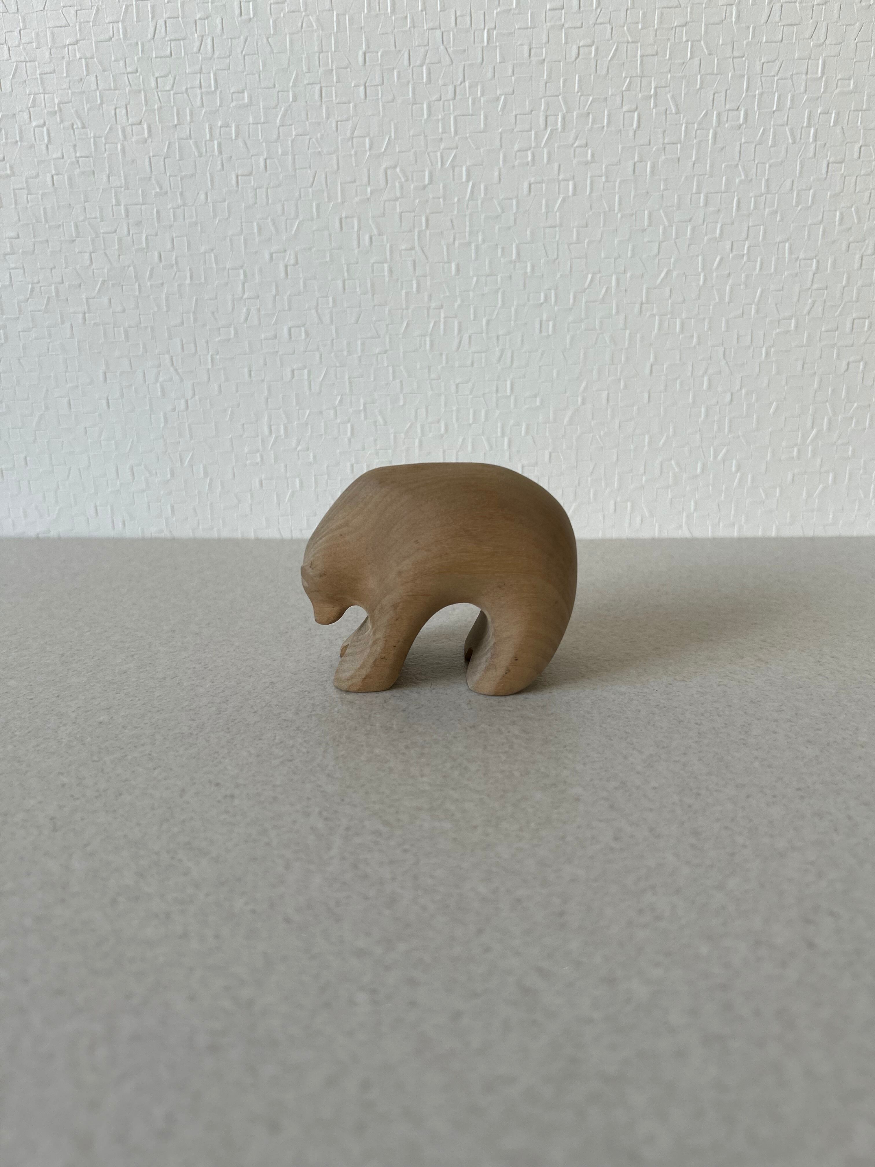 熊の木彫りになります。熊の木彫りと言えば、荒々しく迫力あるものが多いと思われますが、これは丸っこい姿が可愛らしいデザインです。