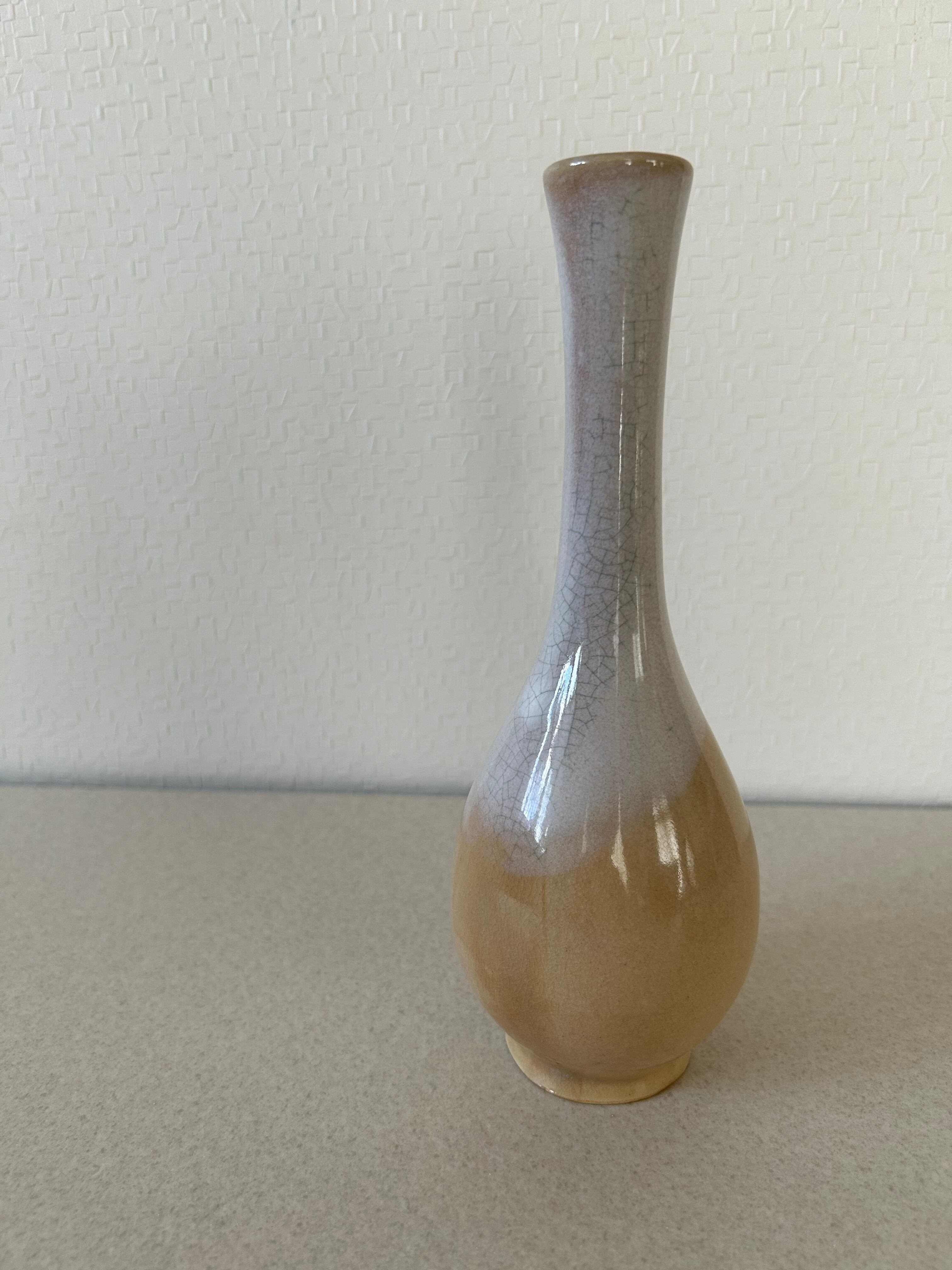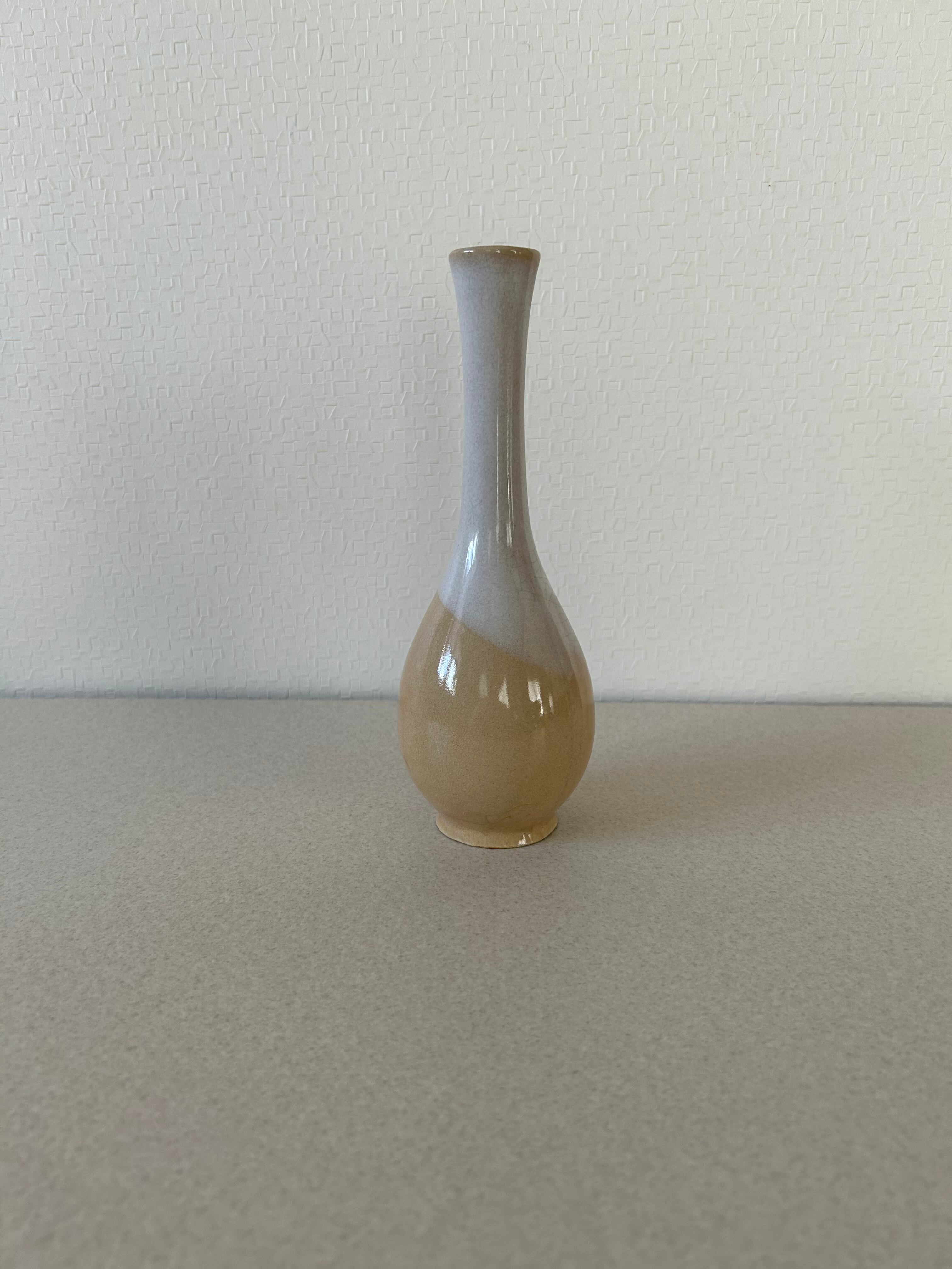 陶器製の一輪挿し。白とベージュが麗な花器です。