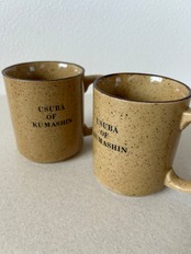 熊本の某金融機関の支店名が印字されたペアのマグカップ。
