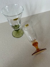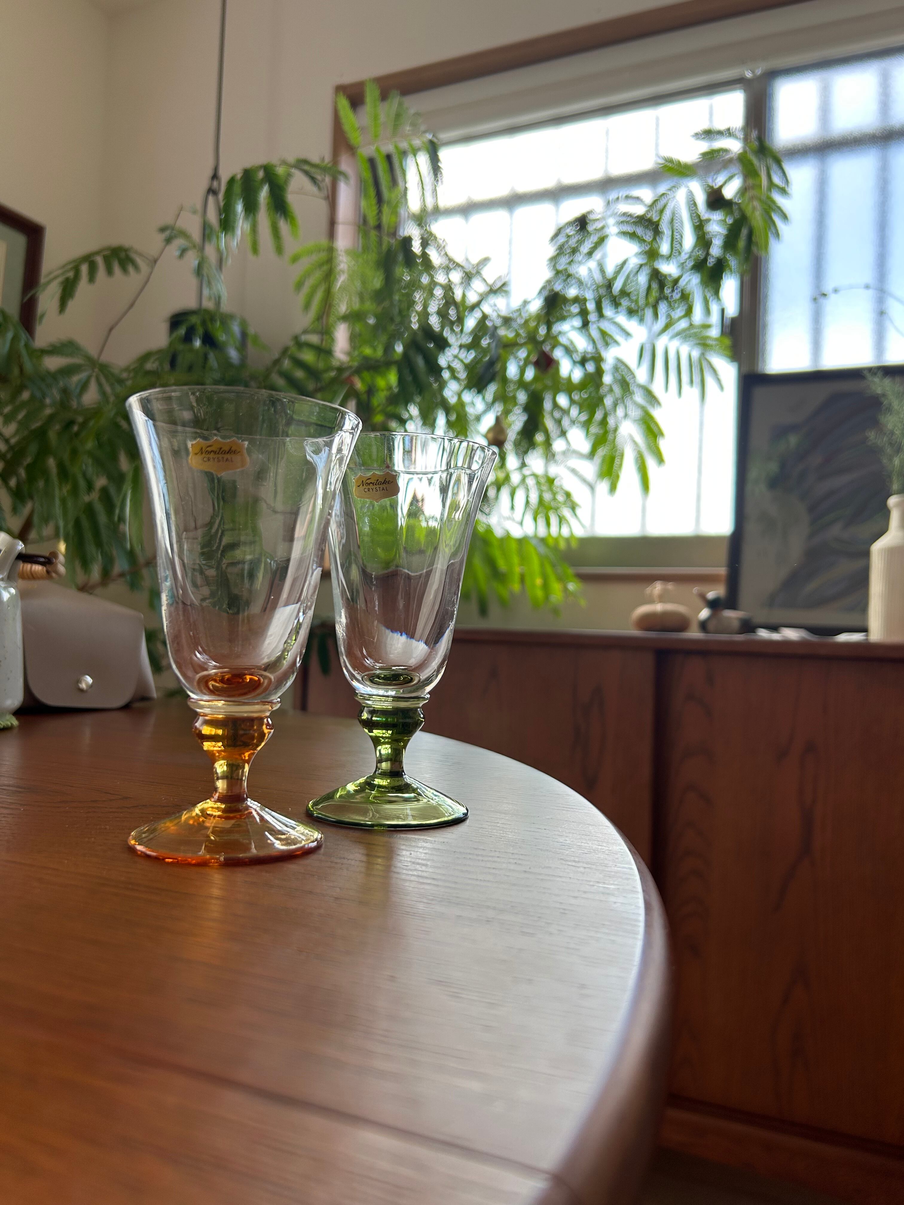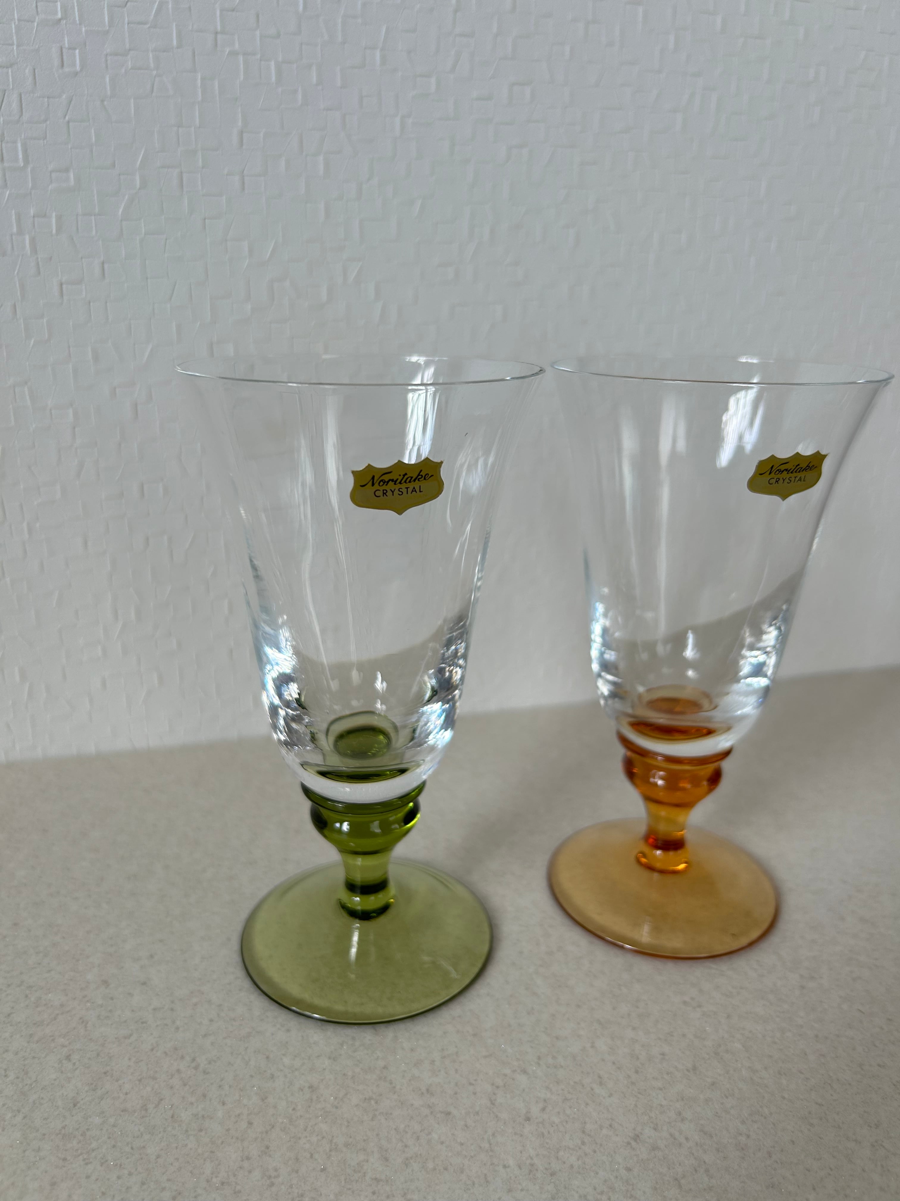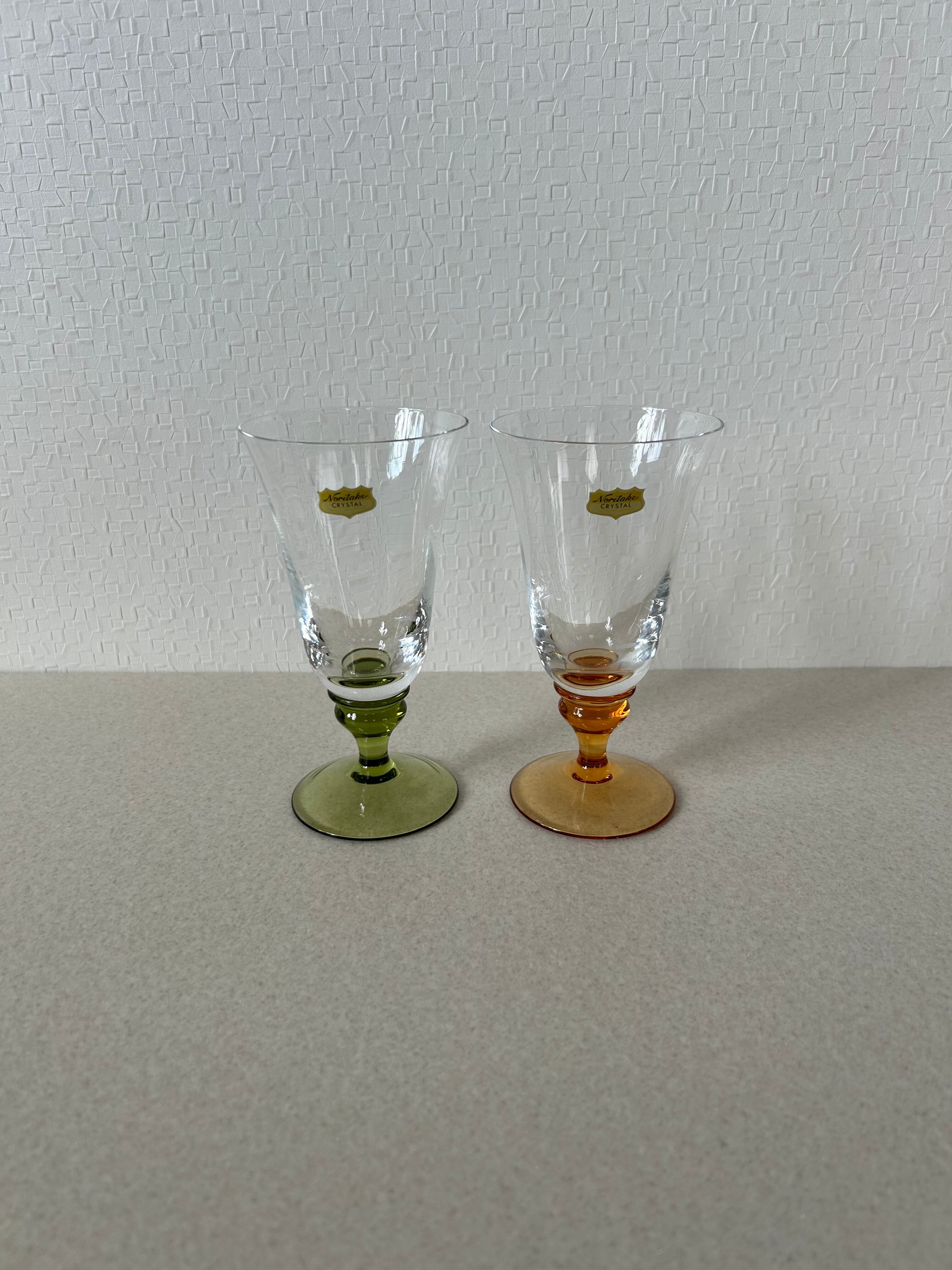 気品のある形と透き通ったグリーンとオレンジのペアグラスになります。