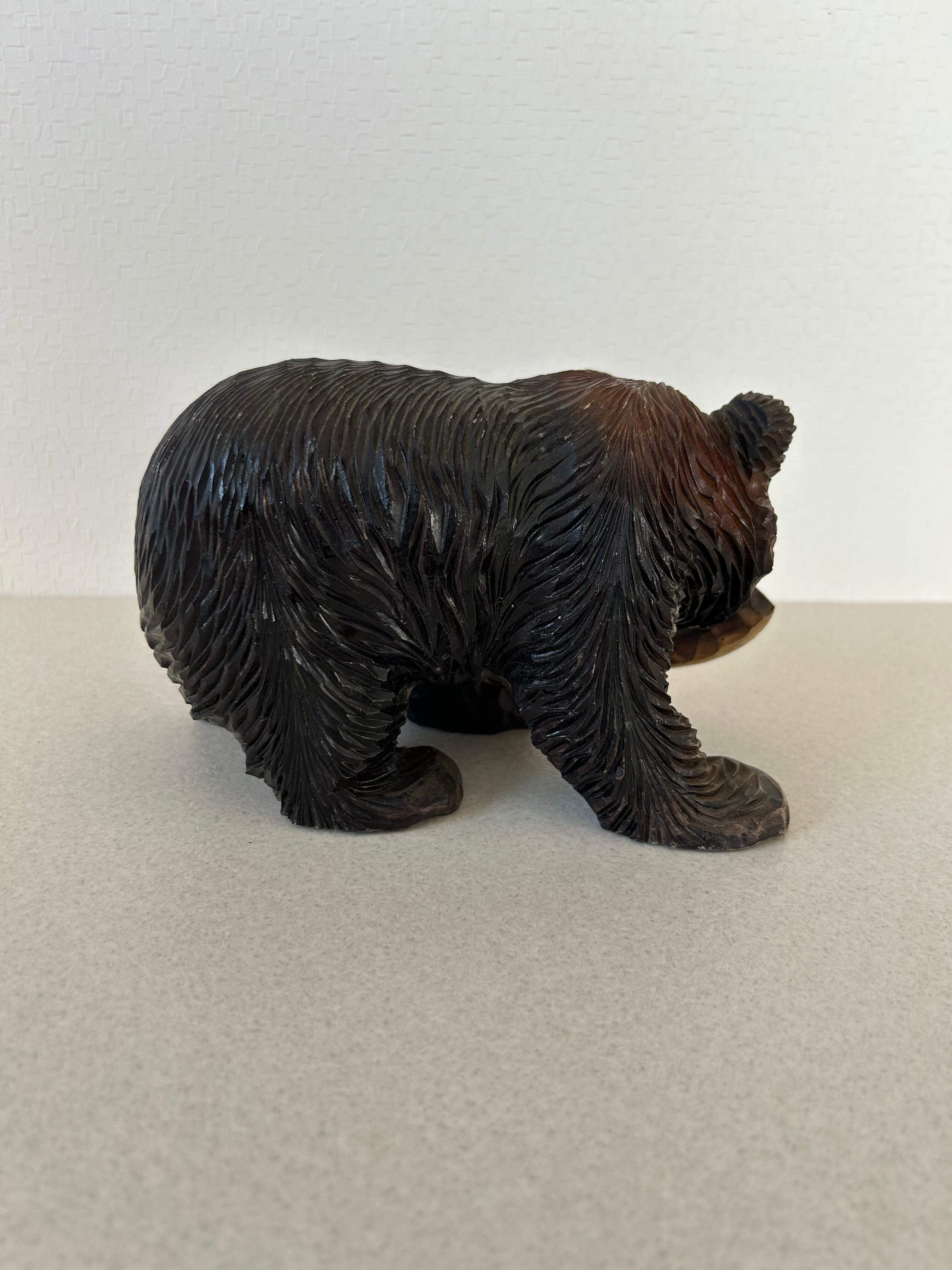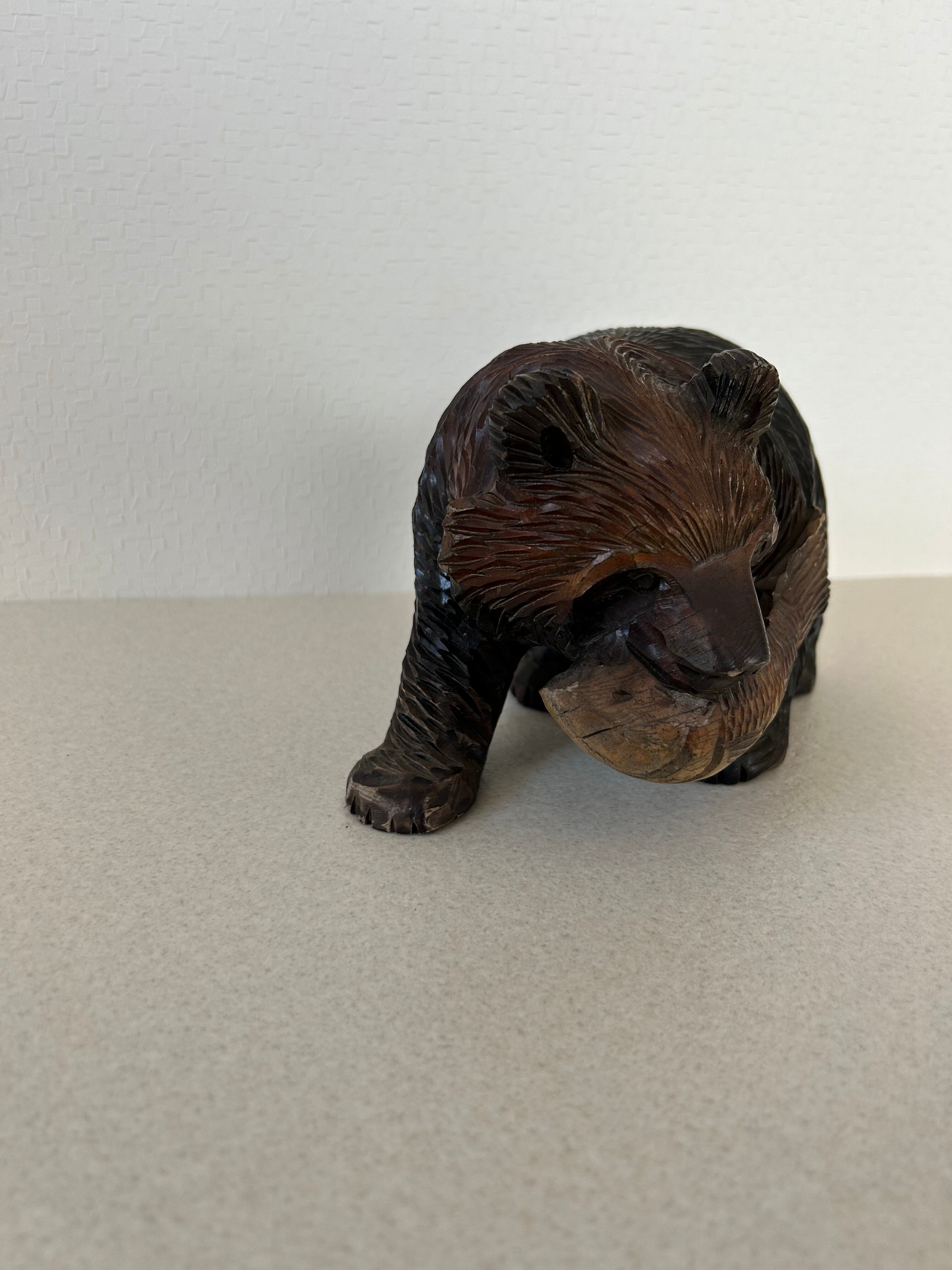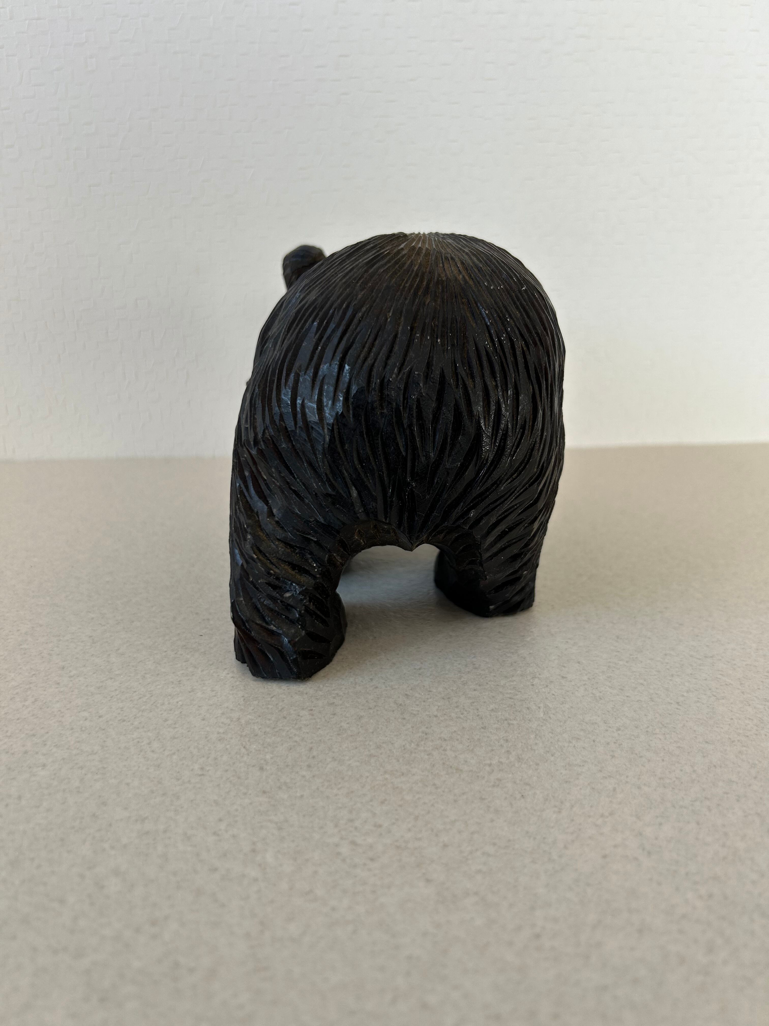 少し平たい、丸みのある表情です。小熊でしょうか、少し愛らしさのある熊です。