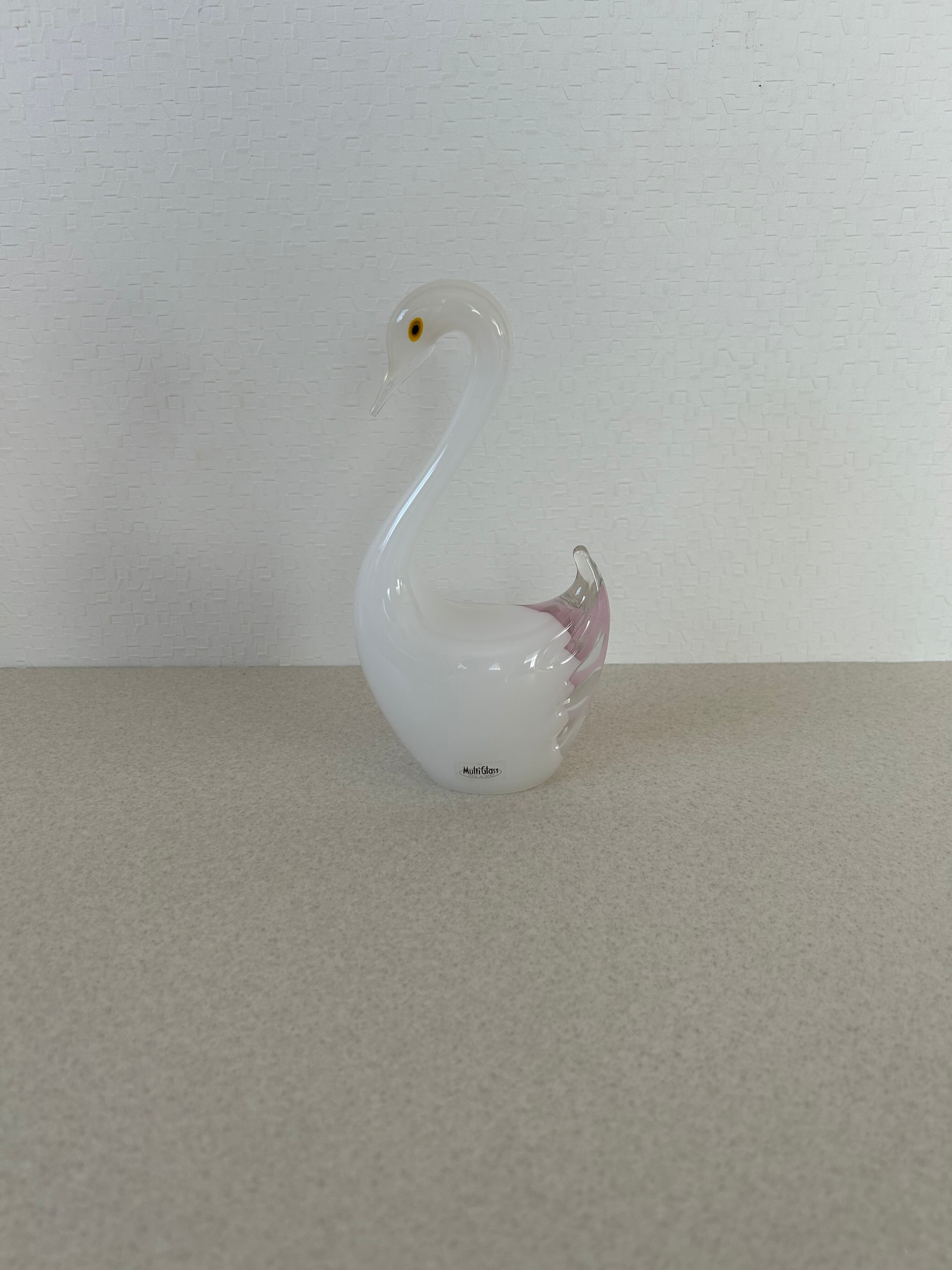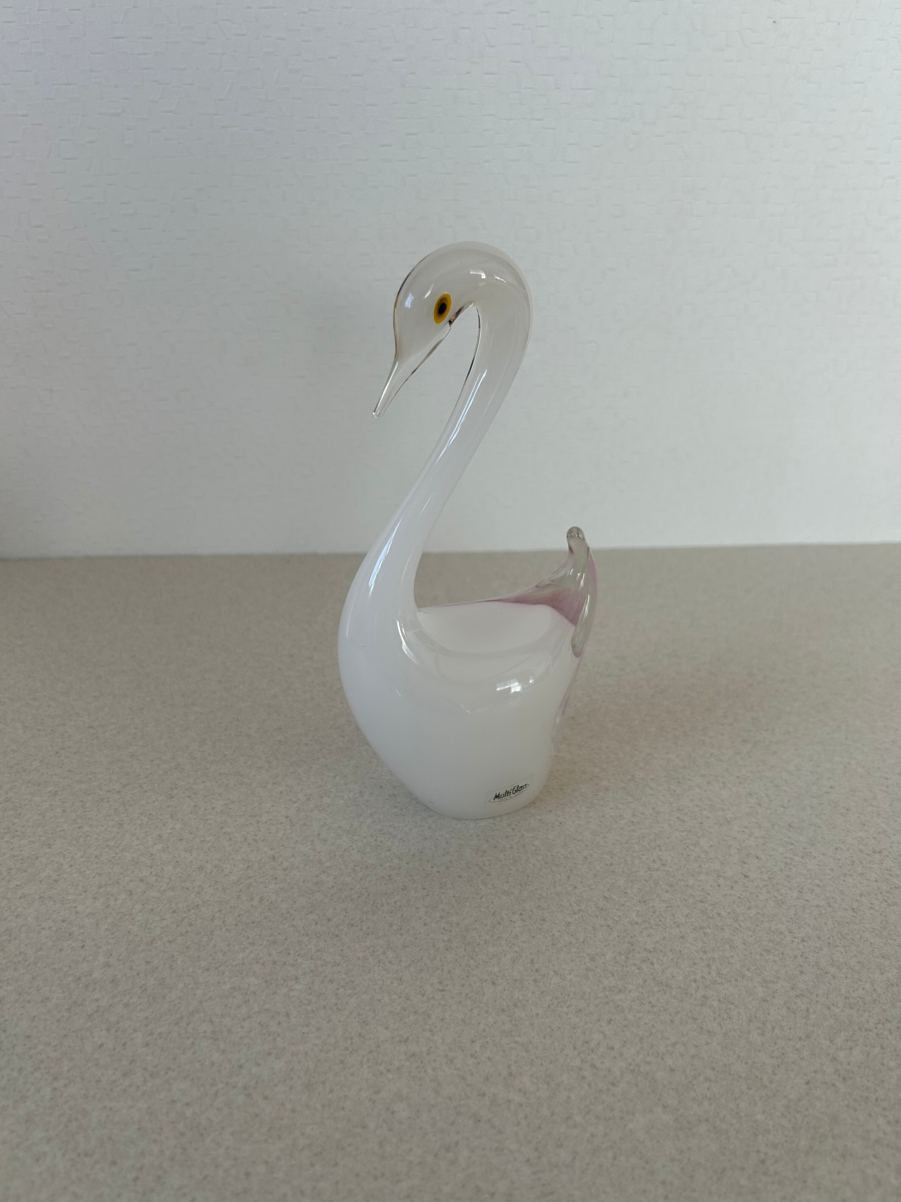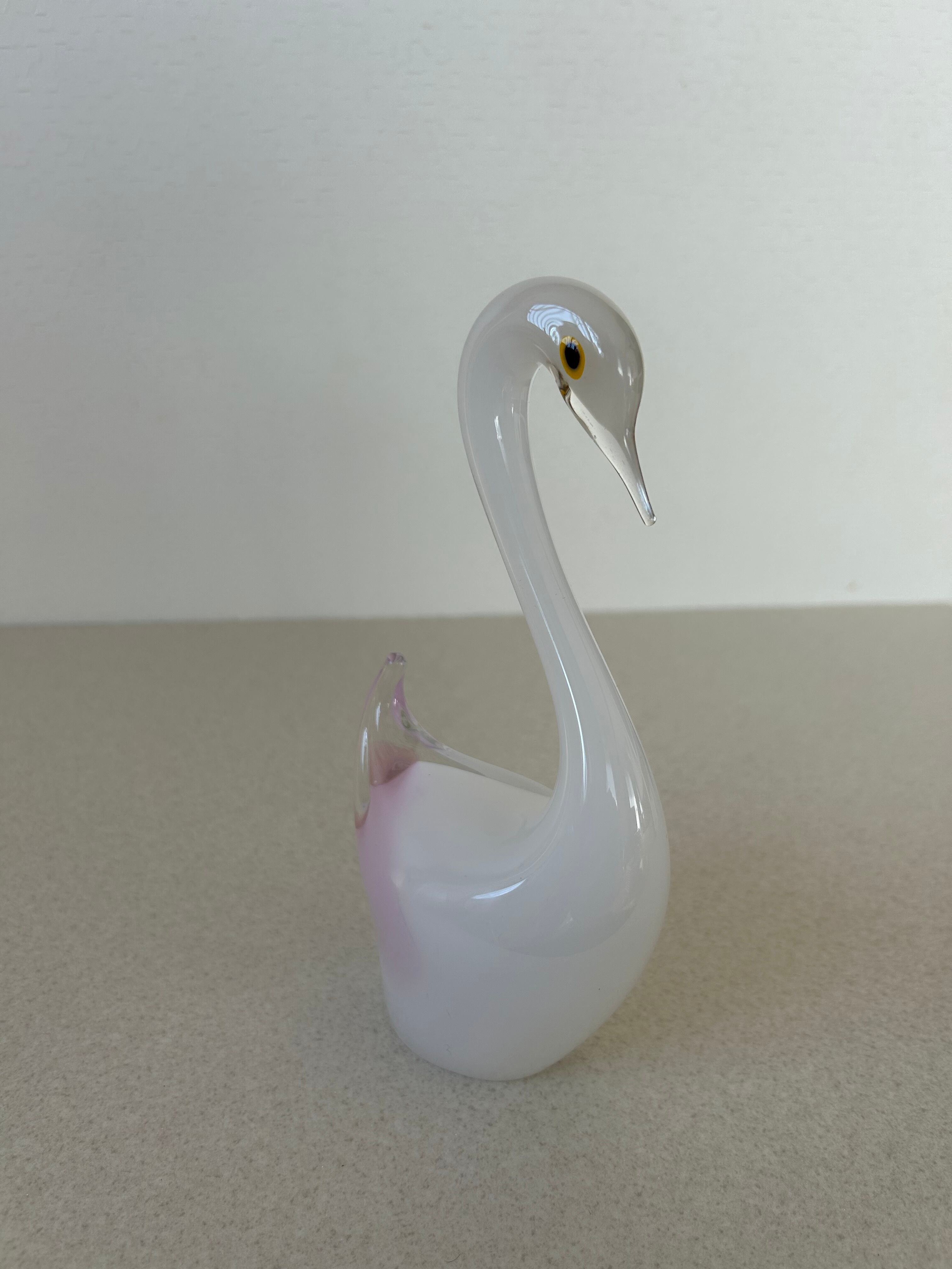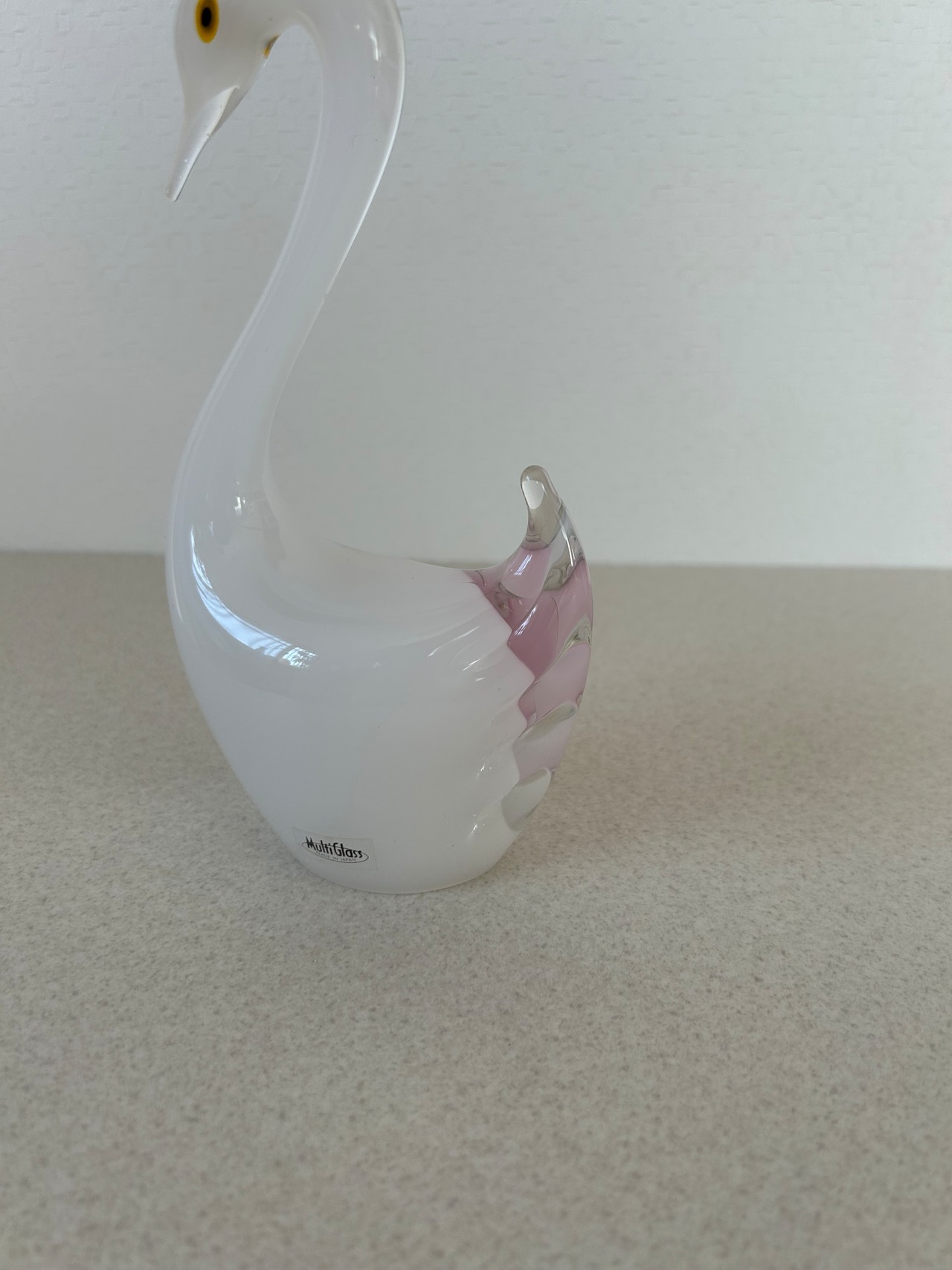 ガラス細工で作られた白鳥です。白とピンク味がかった尾が綺麗な工芸品。見る角度によって少し違った色に映るのもガラス細工の魅力。