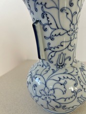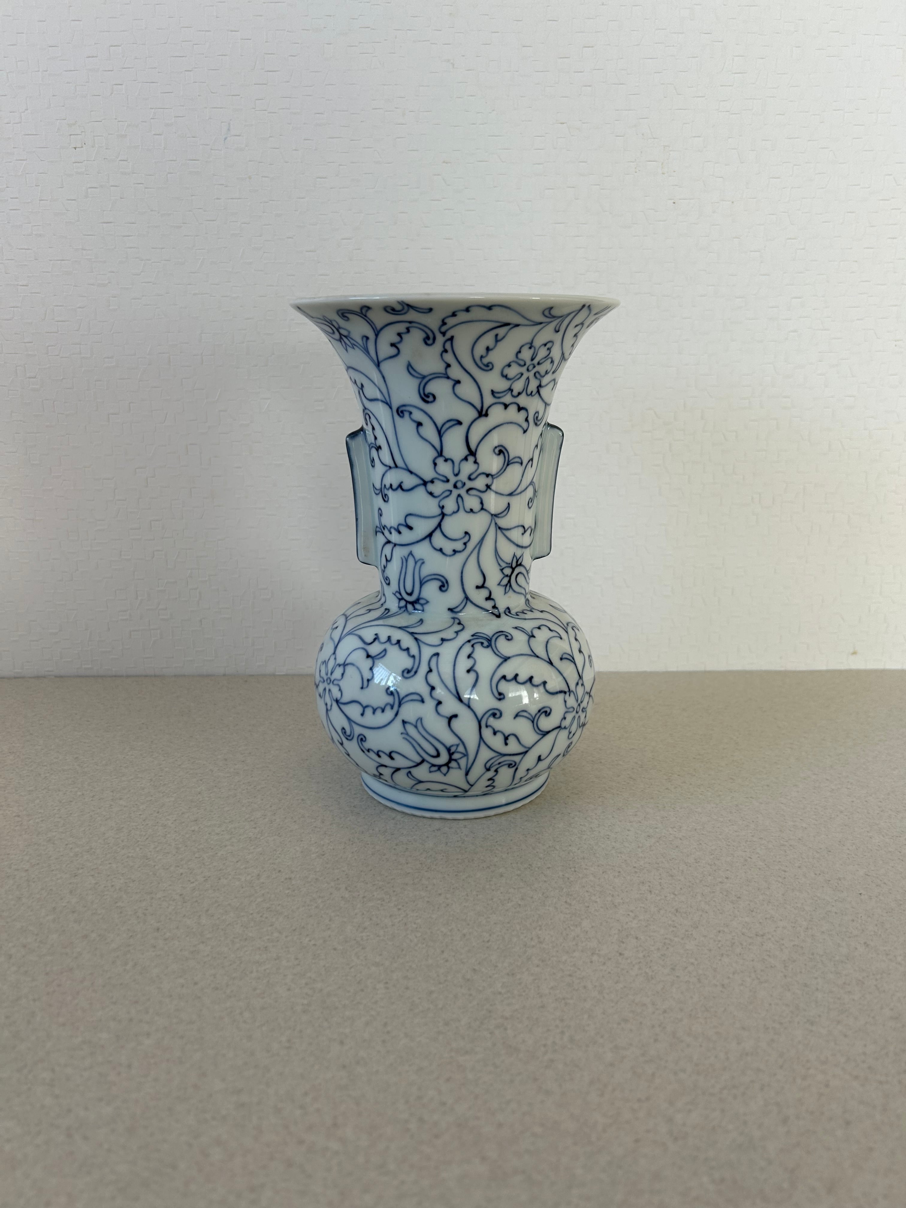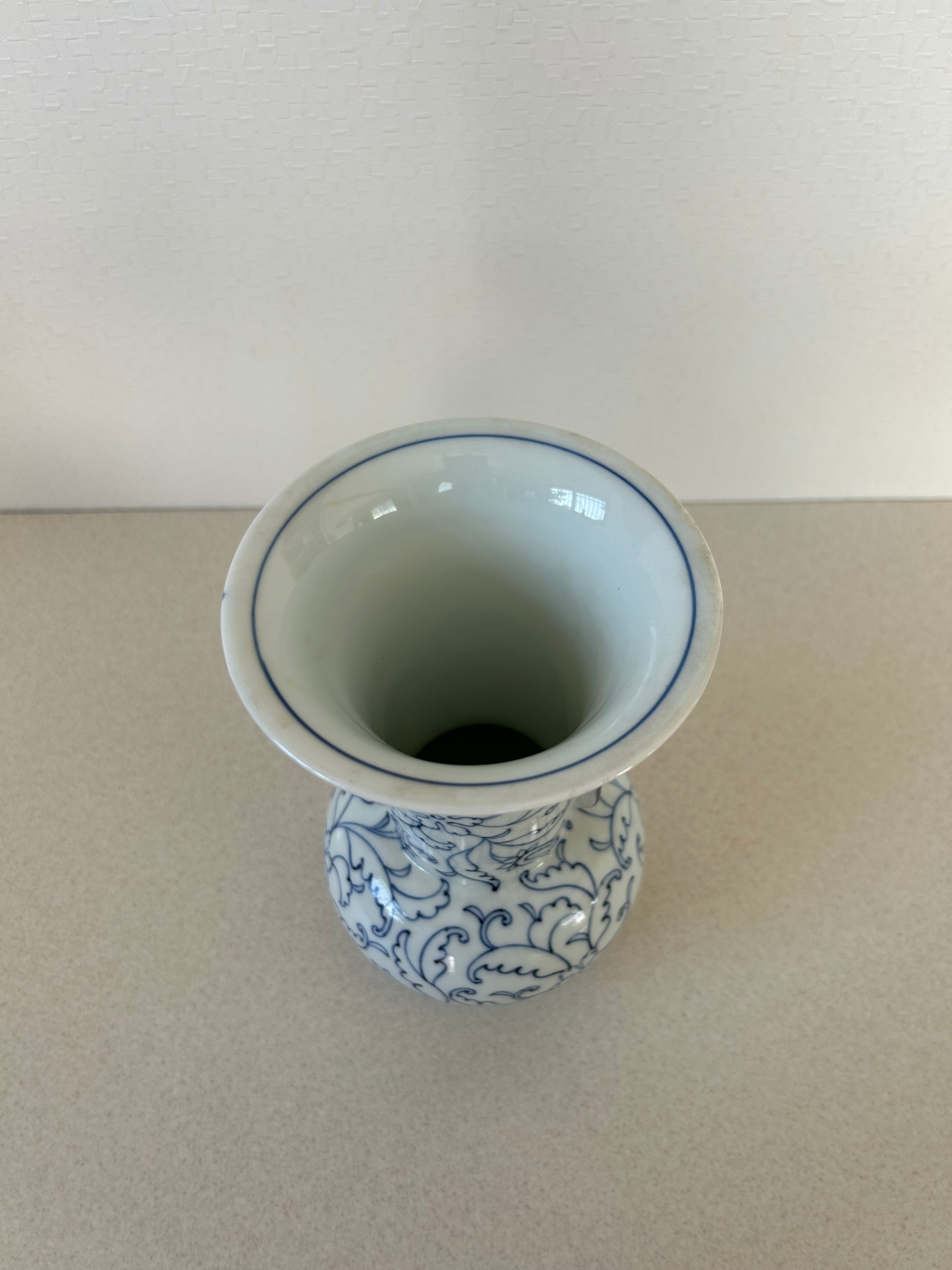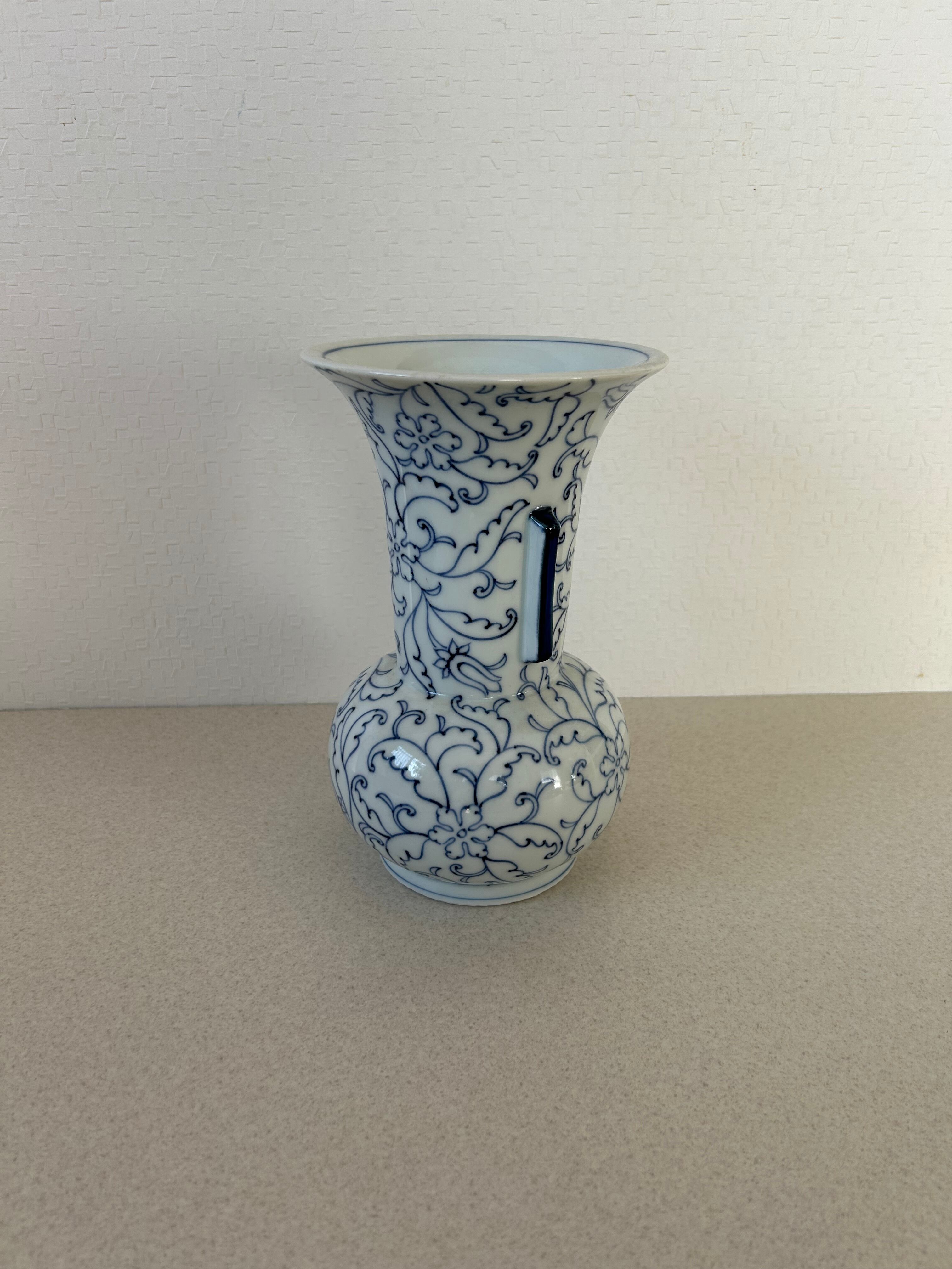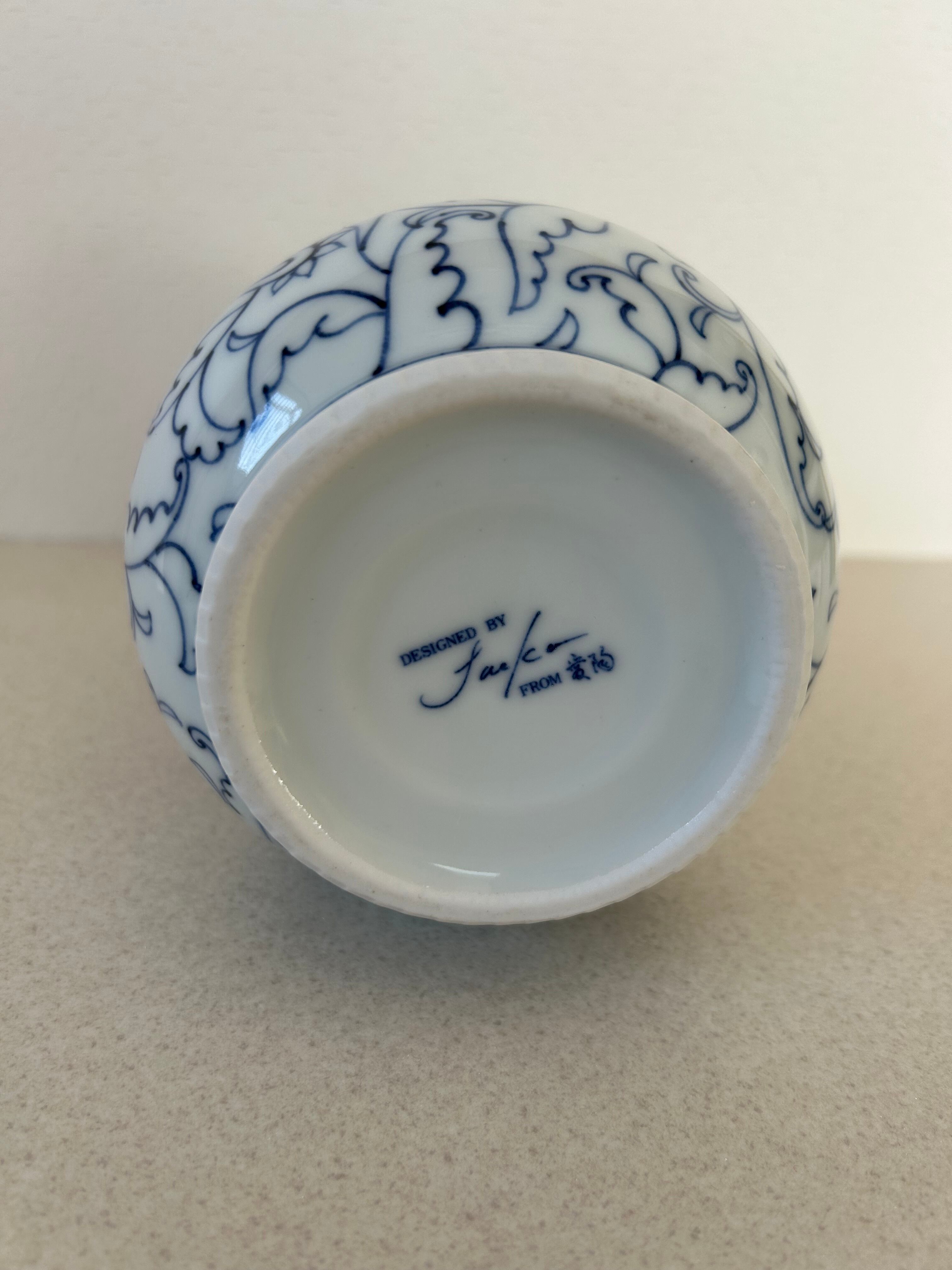 陶器製の花器です。ボタニカルな絵柄が描かれています。